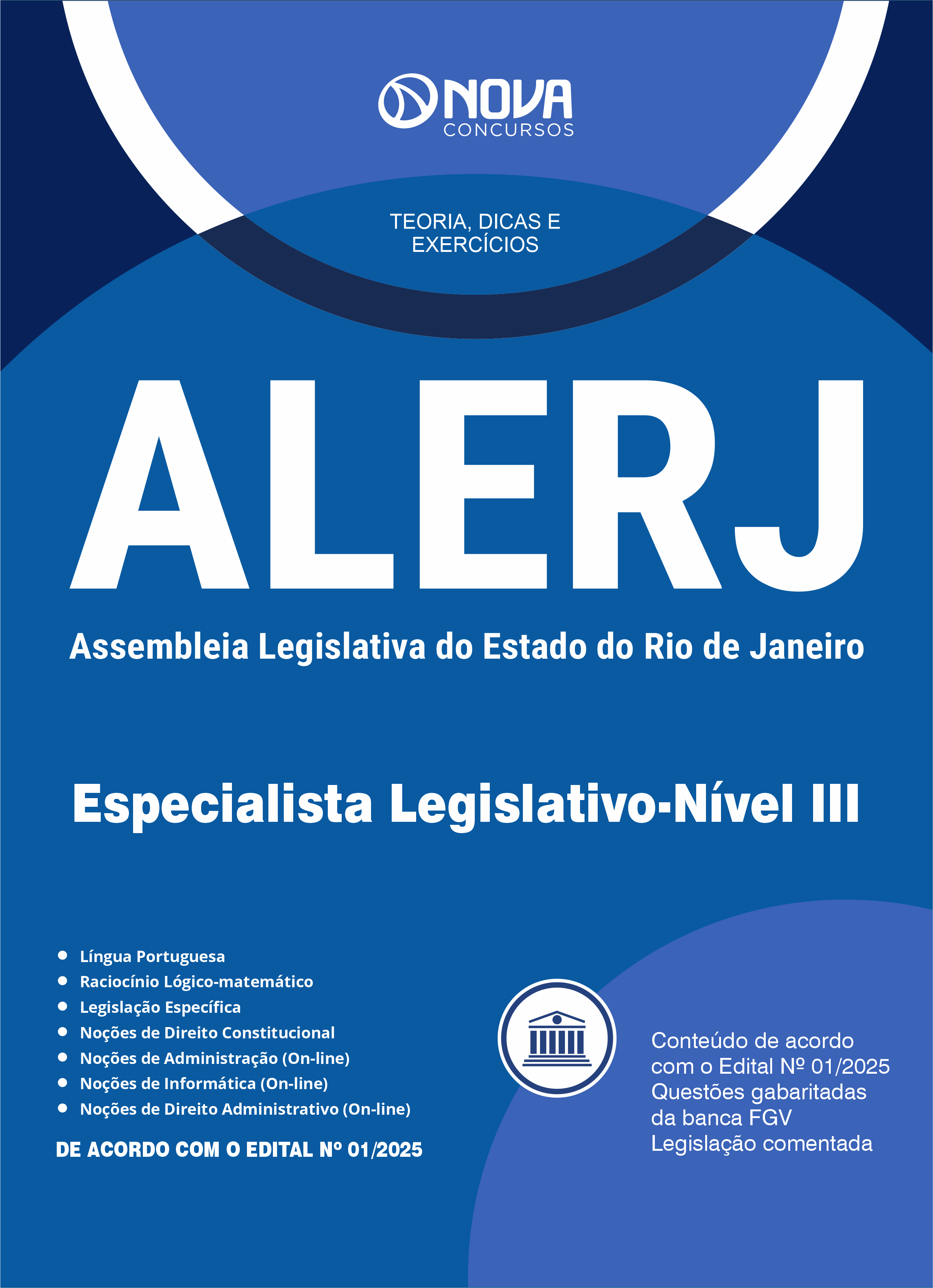 Conquiste sua vaga com a apostila Assembleia Legislativa do Estado do Rio de Janeiro - ALERJ! A Nova Concursos está com você nessa jornada!