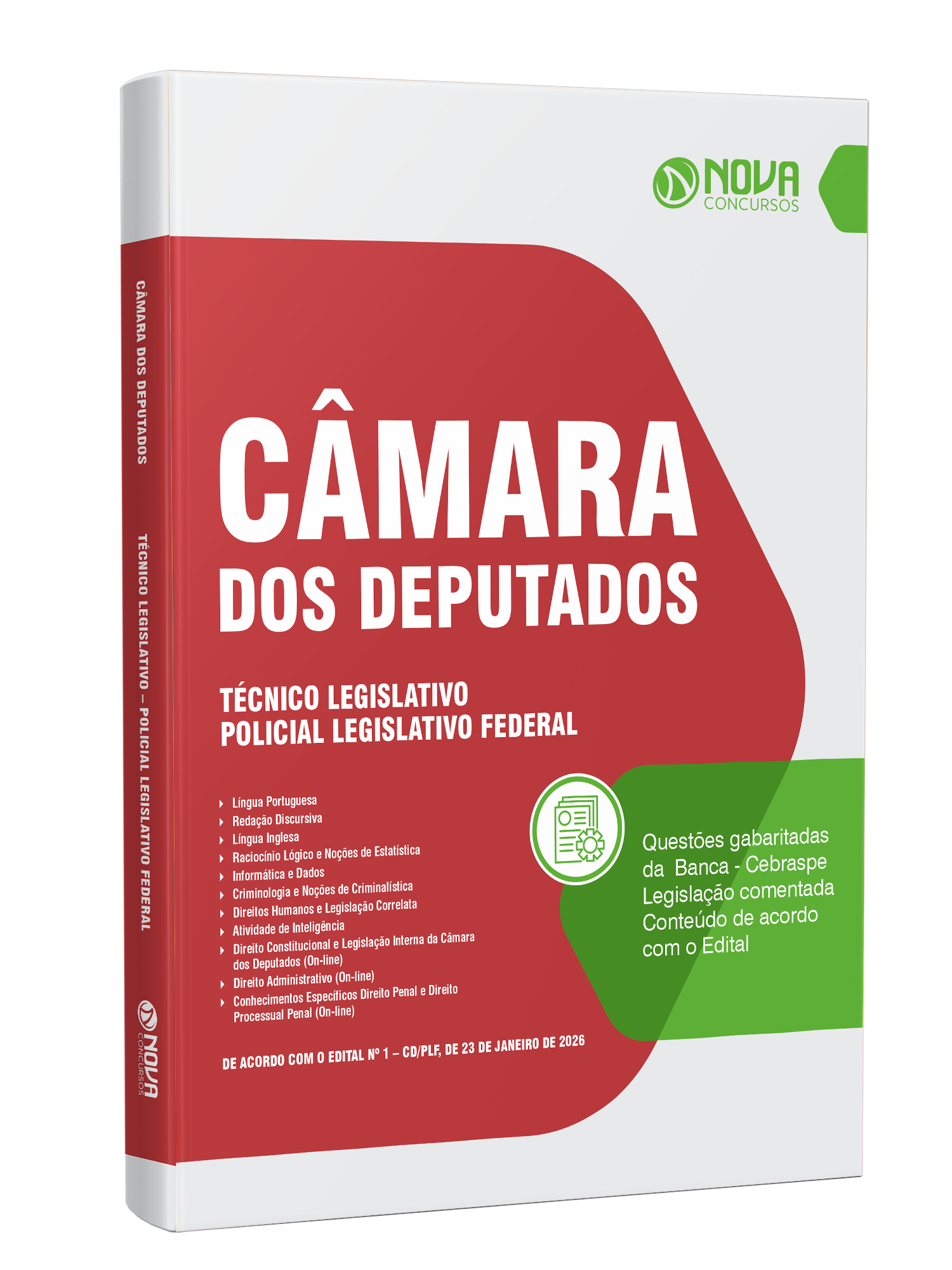 Conquiste sua vaga com a apostila Câmara dos Deputados - Técnico Legislativo – Policial Legislativo Federal! A Nova Concursos está com você nessa jornada!