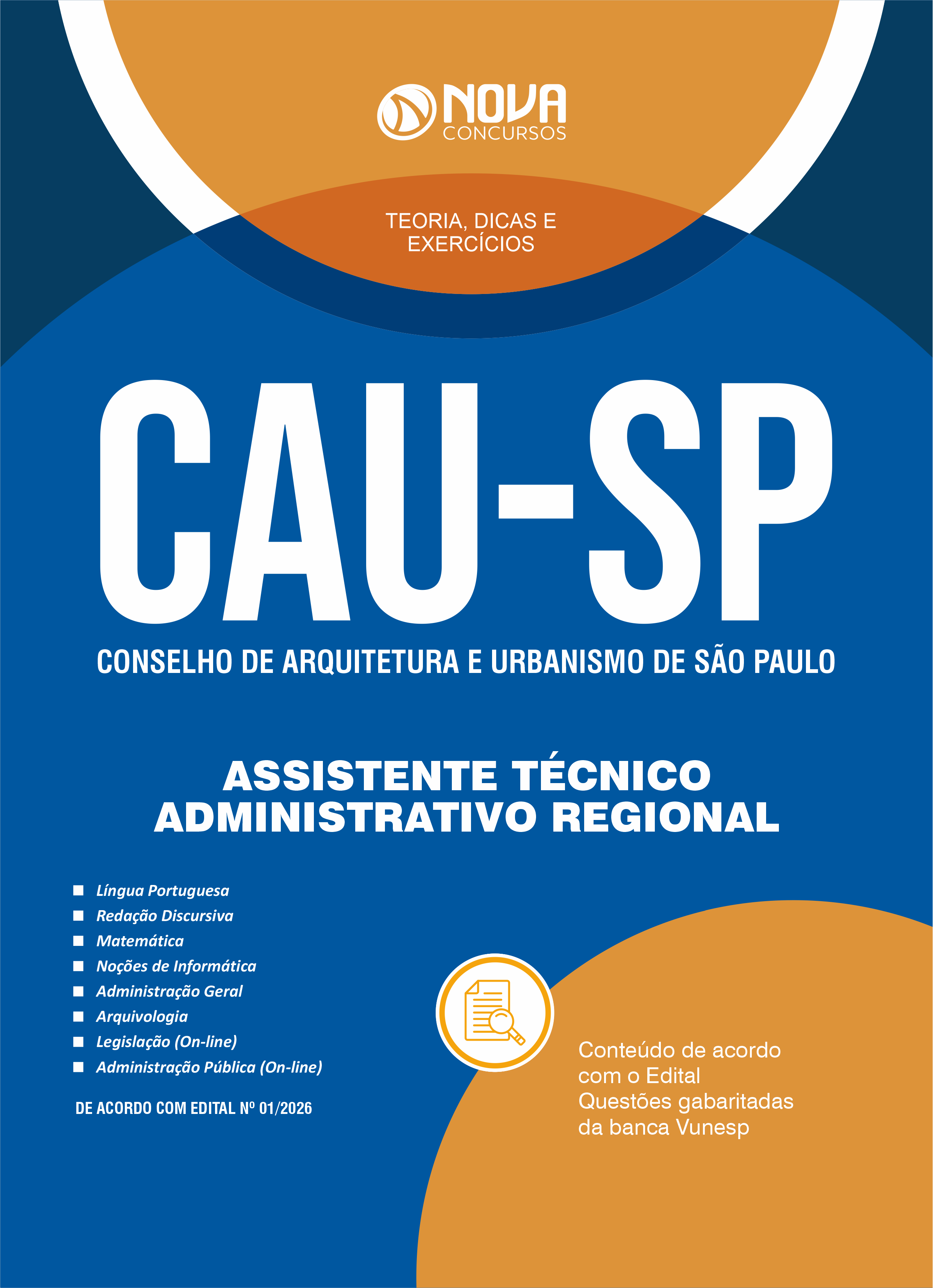 Conquiste sua vaga com a apostila Conselho de Arquitetura e Urbanismo de São Paulo - CAU-SP! A Nova Concursos está com você nessa jornada!