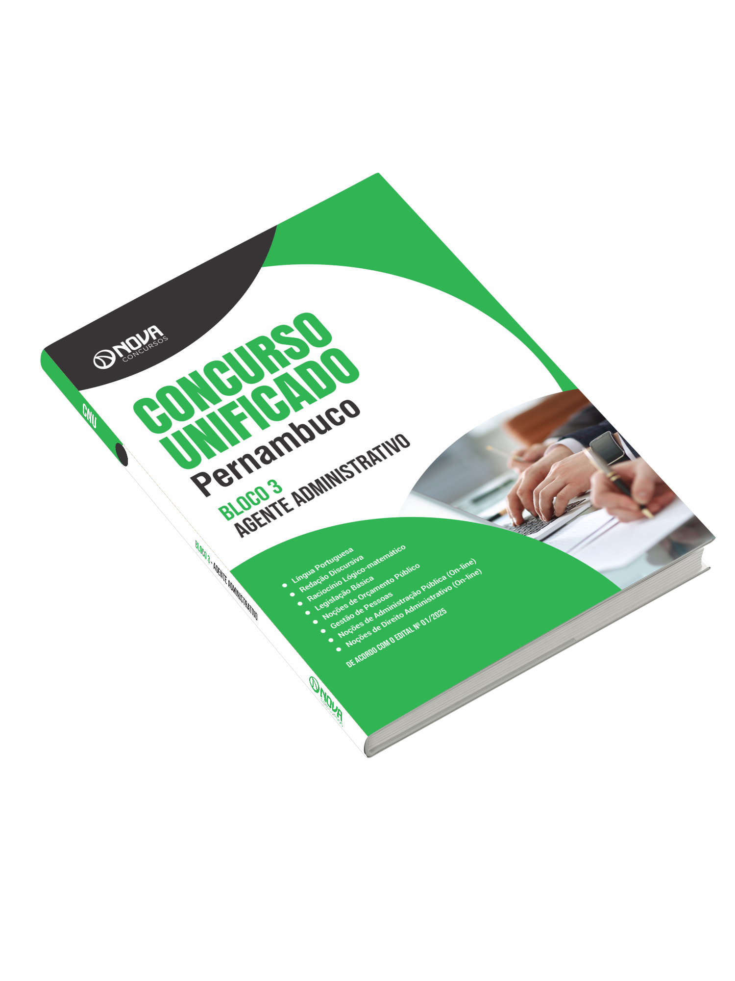 Invista em sua preparação e aumente suas chances aumente suas chances de alcançar a sua aprovação com a apostila do Concurso Público Unificado do Estado do Pernambuco - CPU-PE - Bloco 3 - Nível Médio - Agente Administrativo.