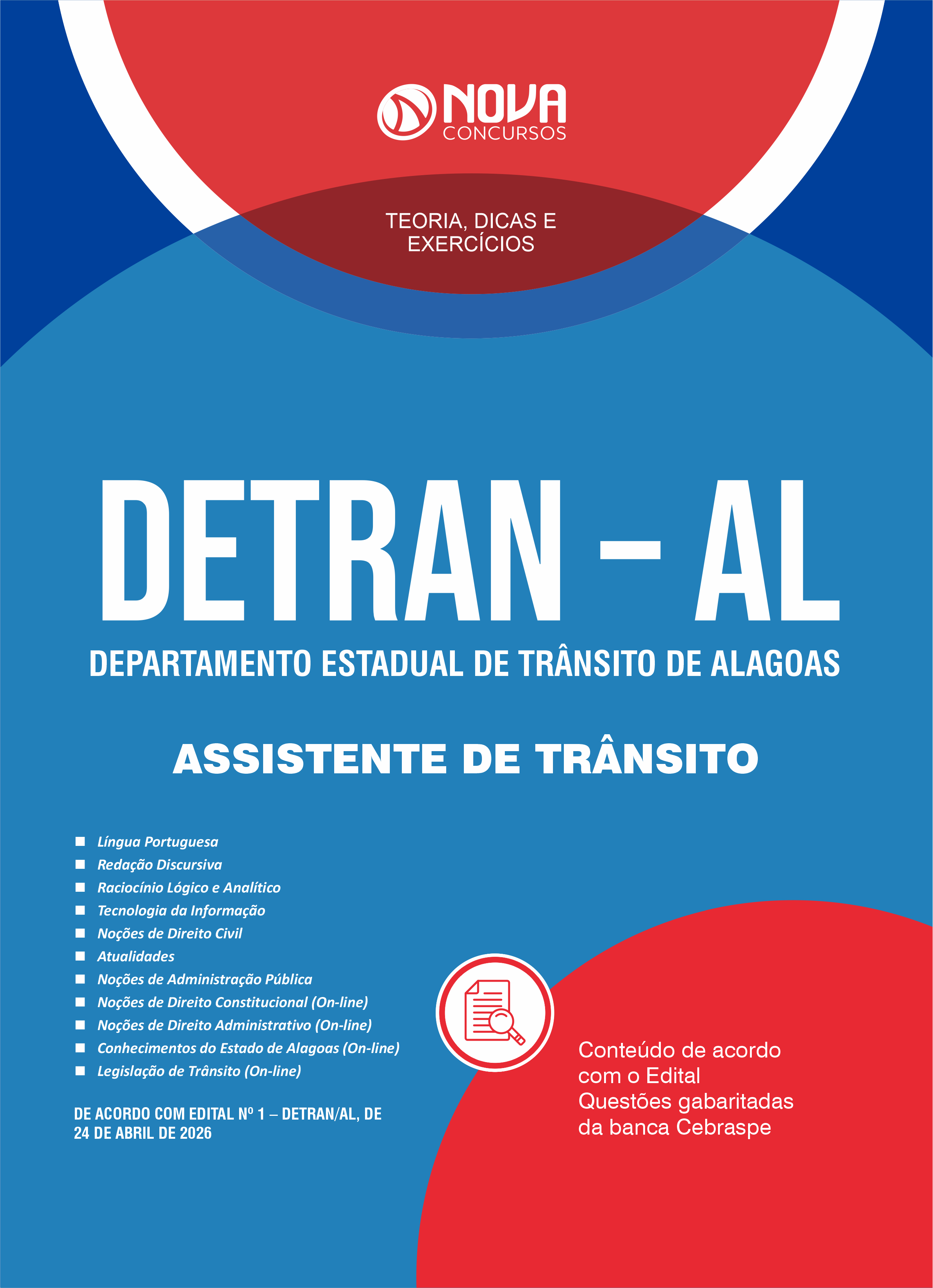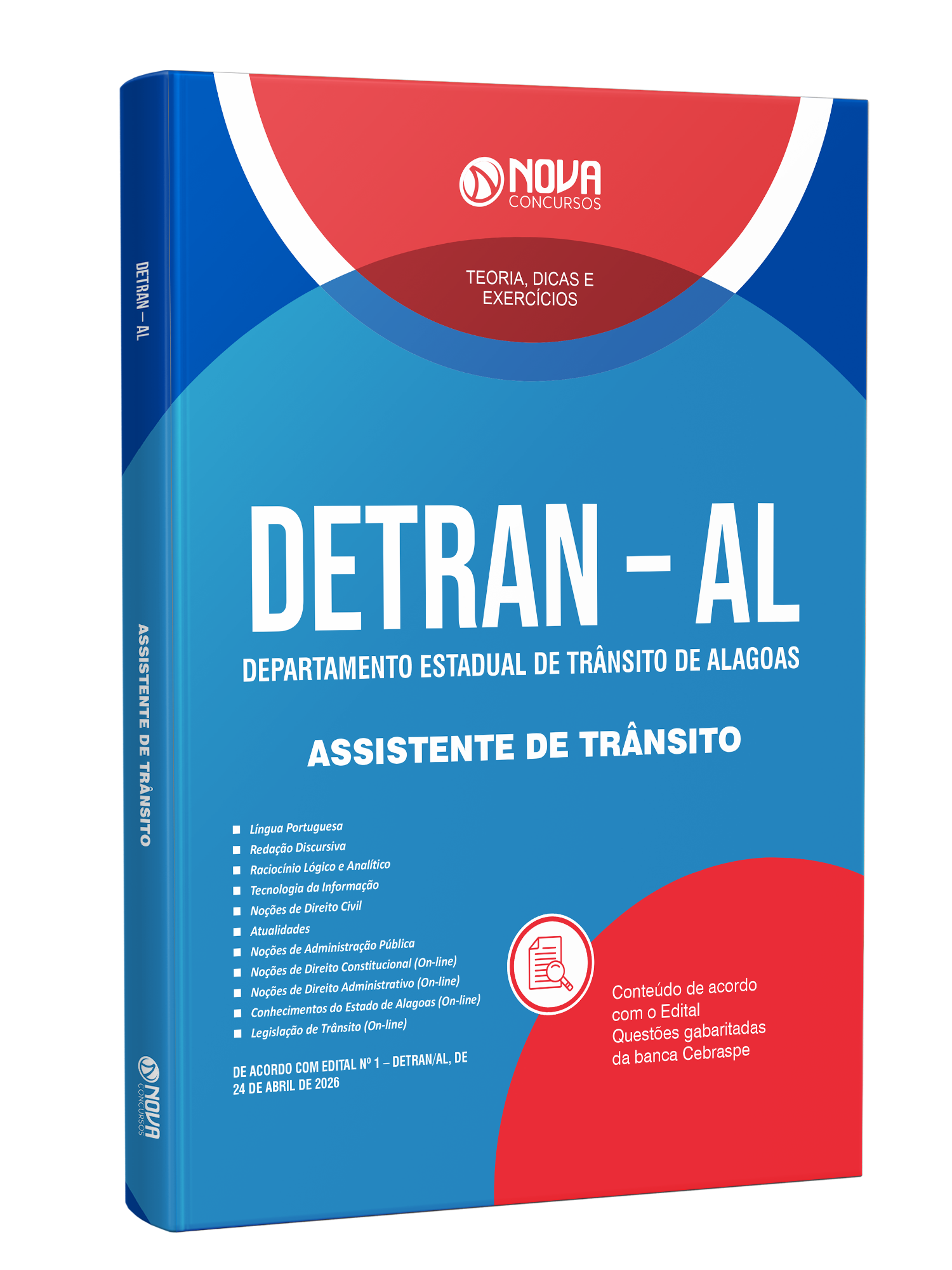 Conquiste sua vaga com a apostila Departamento Estadual de Trânsito de Alagoas - DETRAN-AL! A Nova Concursos está com você nessa jornada!