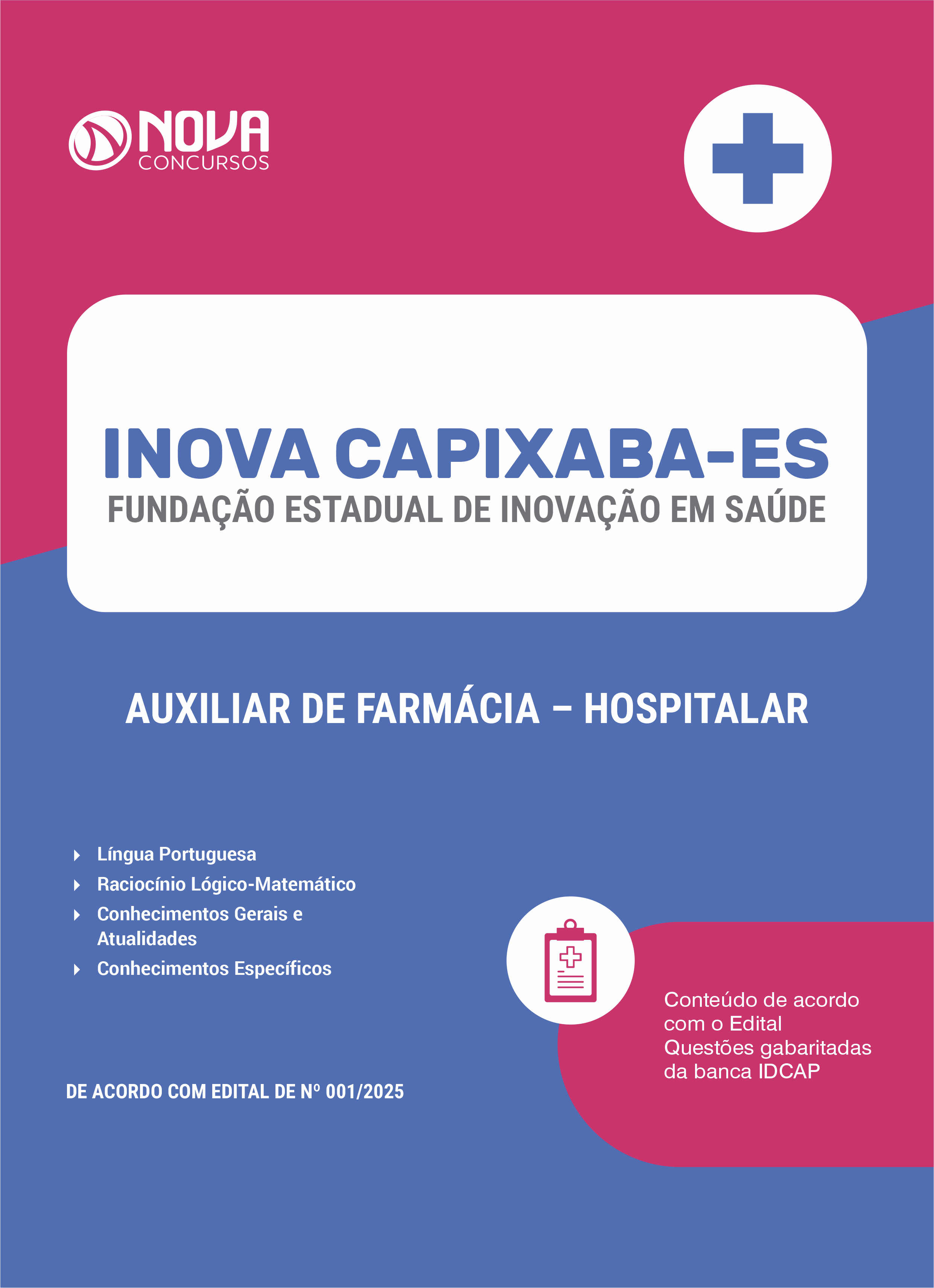 Invista em sua preparação e aumente suas chances de alcançar a sua aprovação com a apostila Fundação Estadual de Inovação em Saúde - INOVA Capixaba - Auxiliar de Farmácia - Hospitalar.