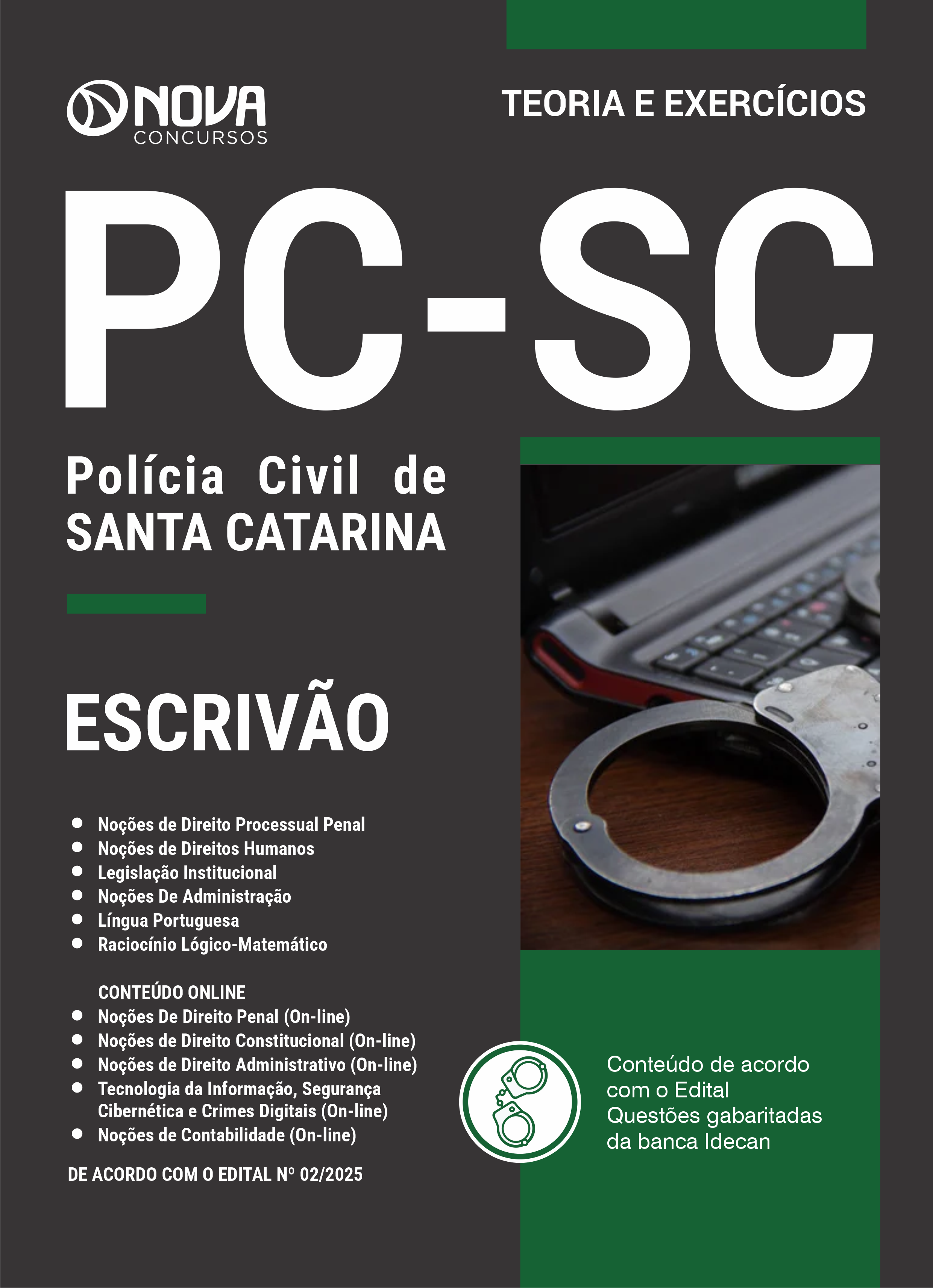 Conquiste sua vaga com a apostila Polícia Civil de Santa Catarina - PC-SC! A Nova Concursos está com você nessa jornada!