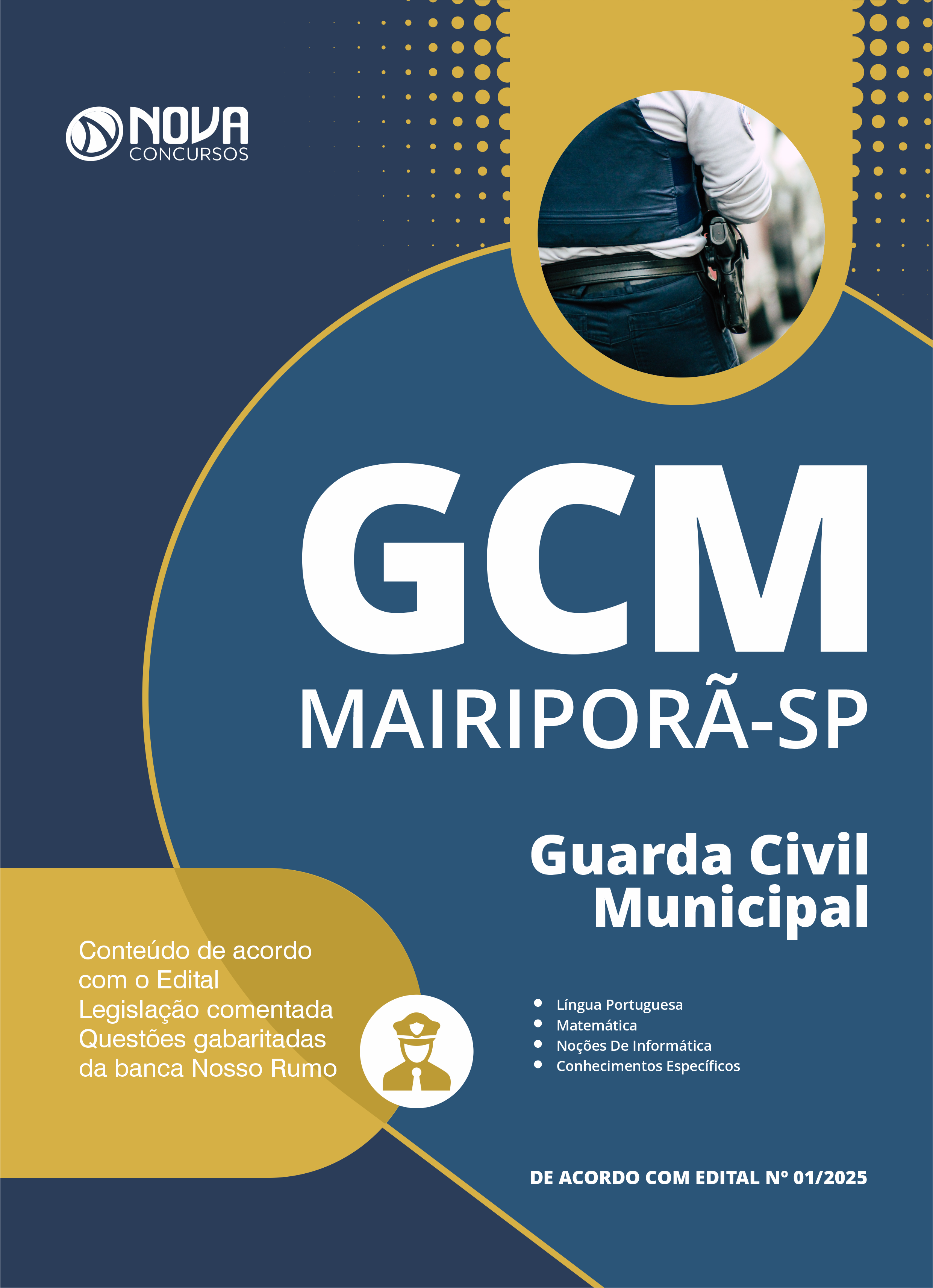 Conquiste sua vaga com a apostila Prefeitura Municipal de Mairiporã - SP - Guarda Civil Municipal de 3ª Classe! A Nova Concursos está com você nessa jornada!