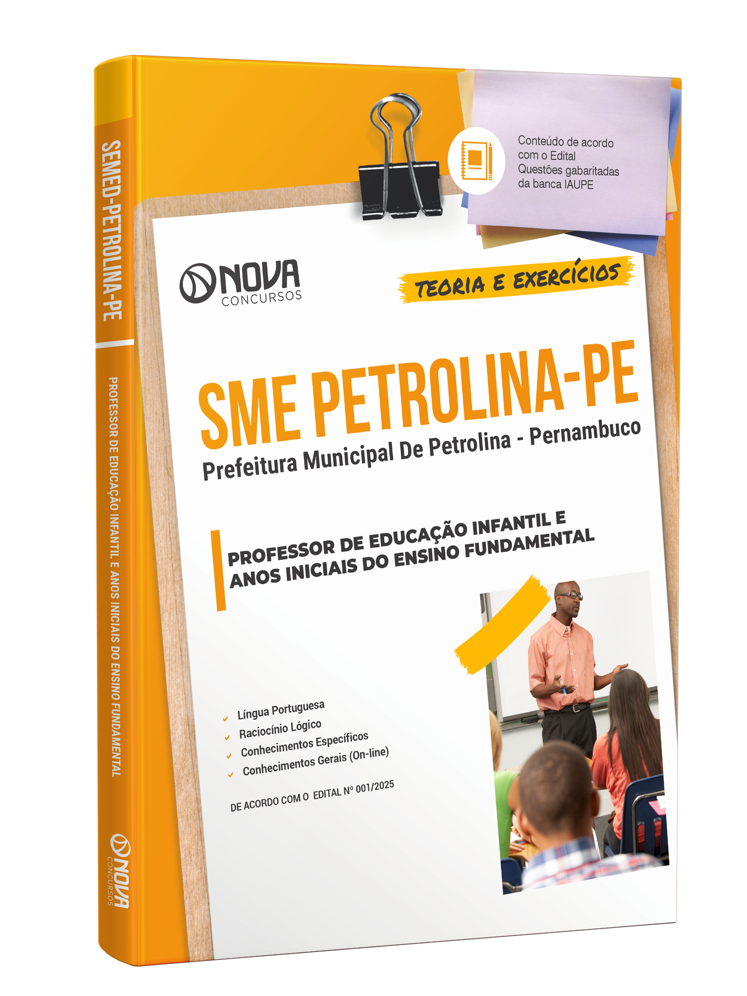 Invista em sua preparação e aumente suas chances de alcançar a sua aprovação com a apostila Prefeitura Municipal de Petrolina - PE - Professor de Educação Infantil e Anos Iniciais do Ensino Fundamental.