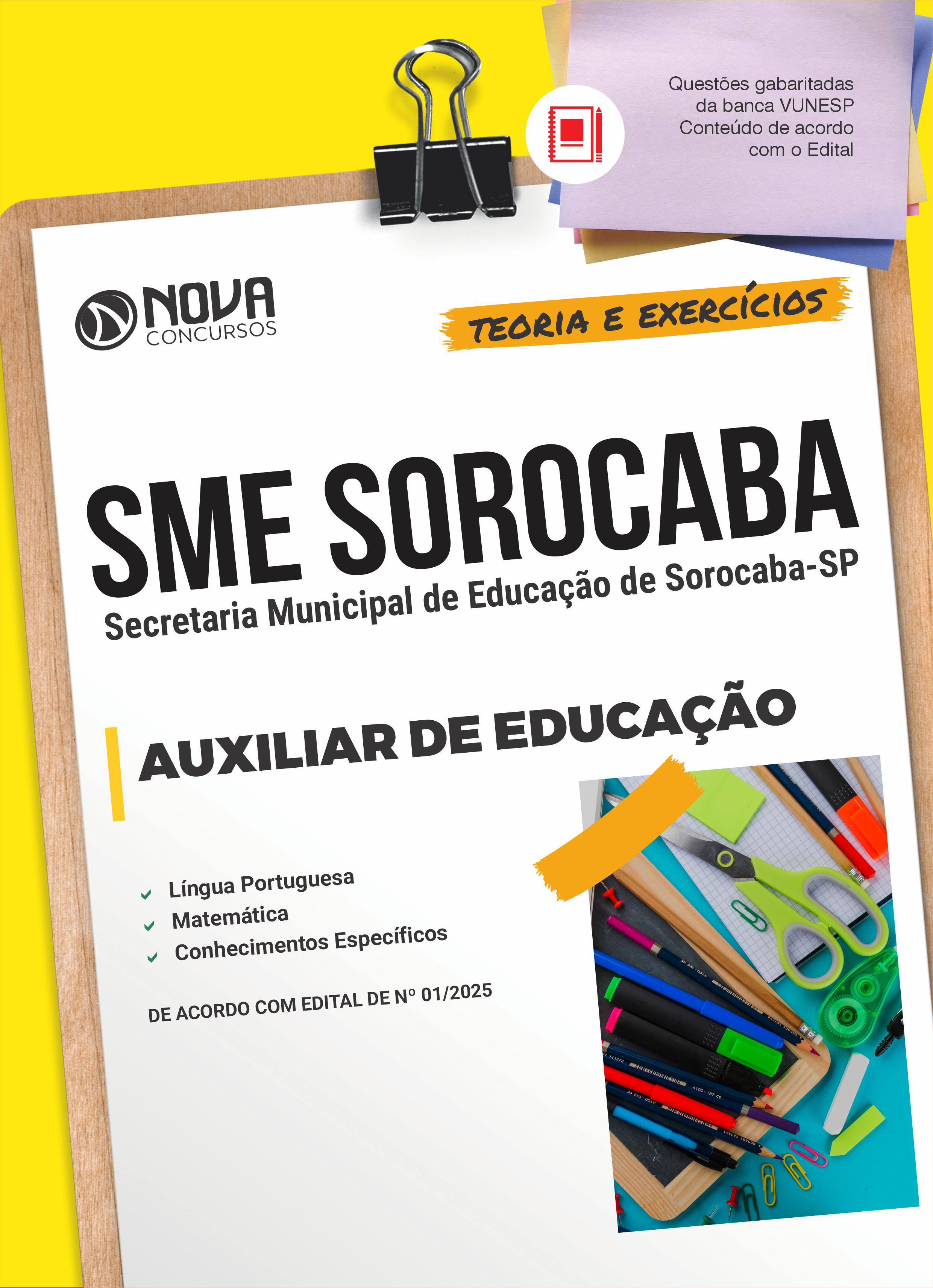 Conquiste sua vaga com a apostila Prefeitura de Sorocaba - SP - Auxiliar de Educação! A Nova Concursos está com você nessa jornada!