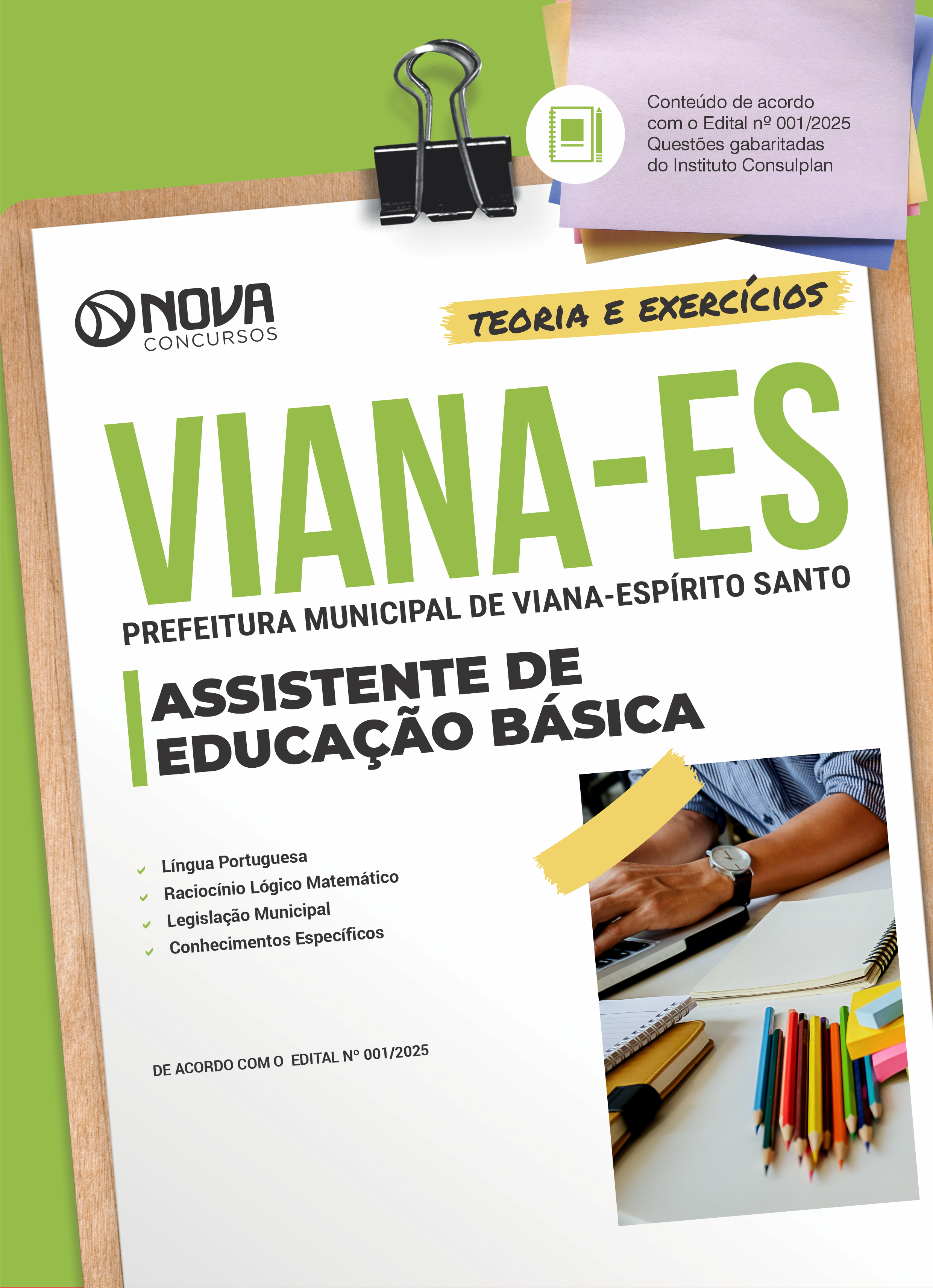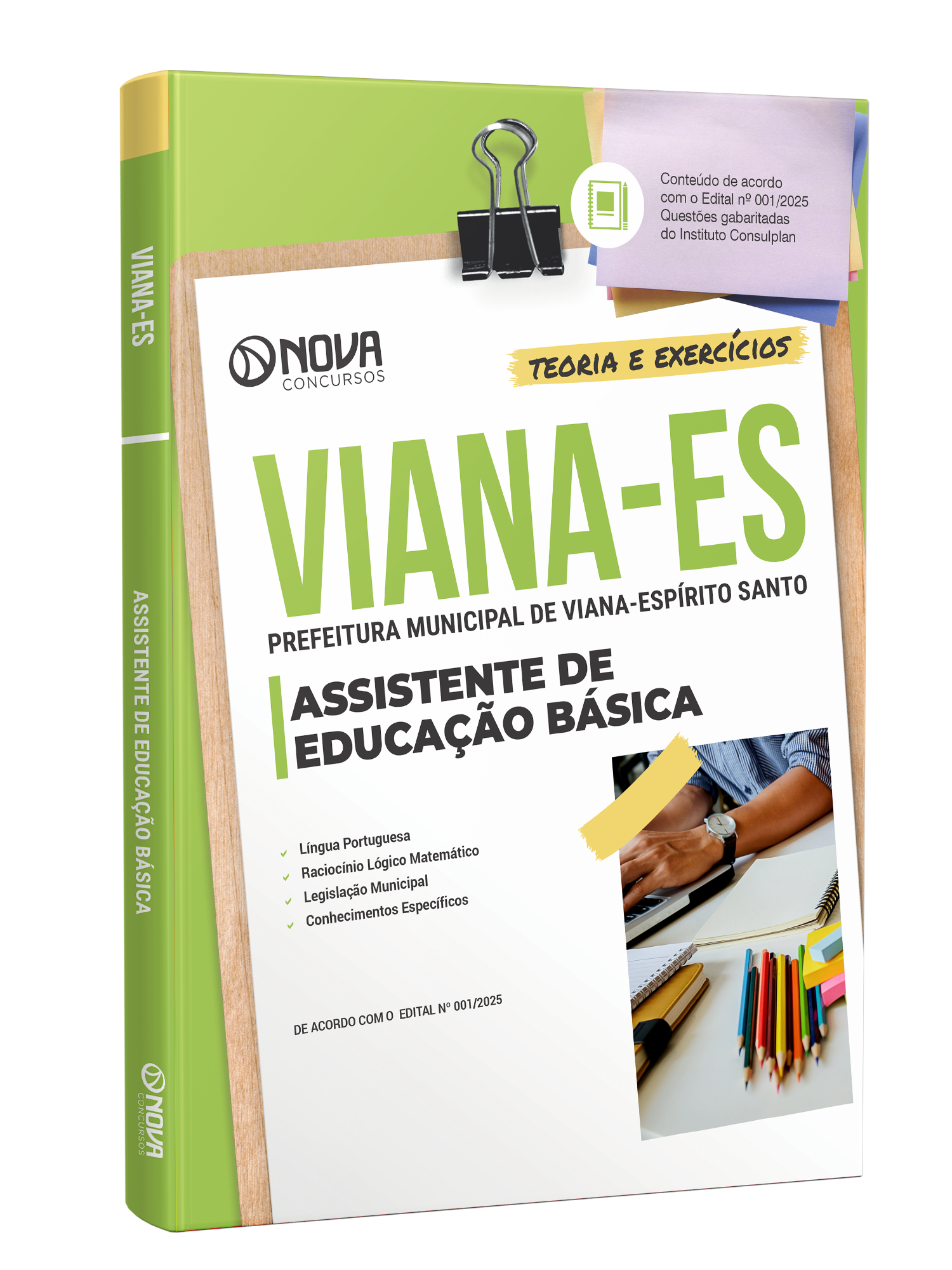 Invista em sua preparação e aumente suas chances de alcançar a sua aprovação com a apostila - Prefeitura de Viana-ES - Assistente de Educação Básica.