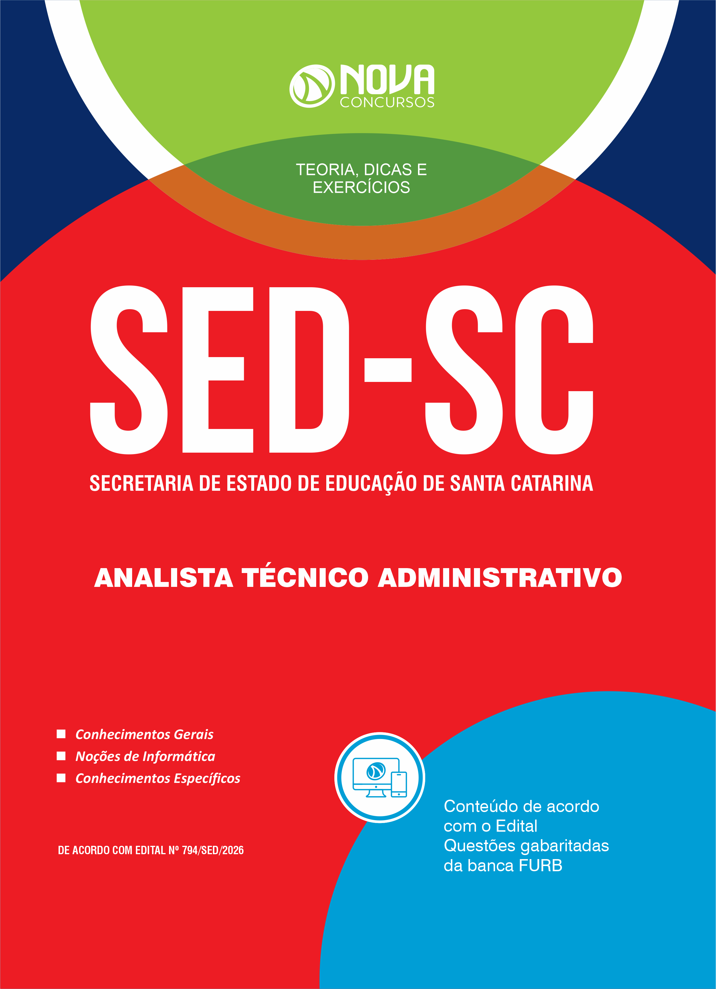 Conquiste sua vaga com a apostila Secretaria de Estado da Educação de Santa Catarina - SED-SC! A Nova Concursos está com você nessa jornada!