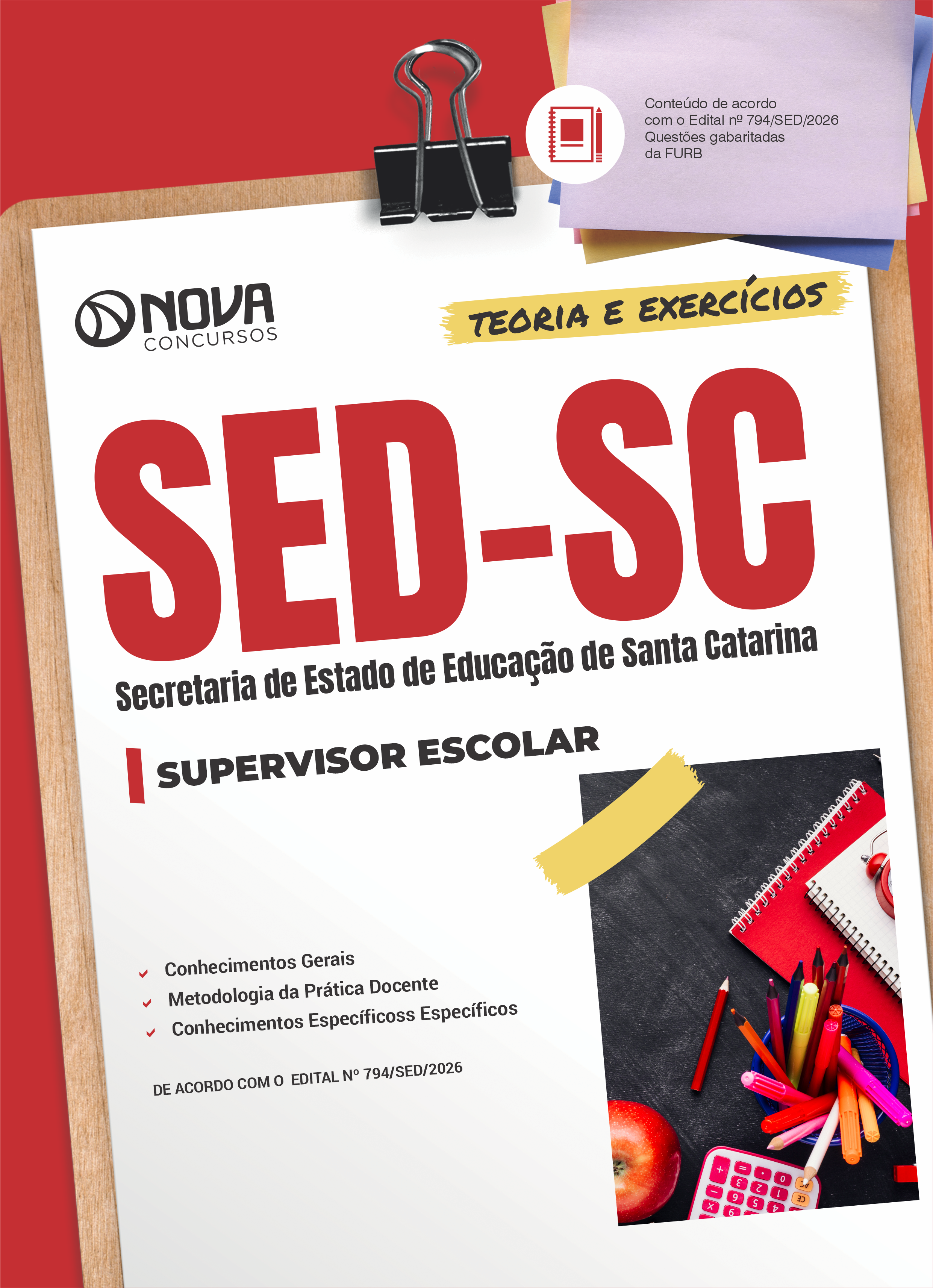 Conquiste sua vaga com a apostila Secretaria de Estado da Educação de Santa Catarina - SED-SC! A Nova Concursos está com você nessa jornada!