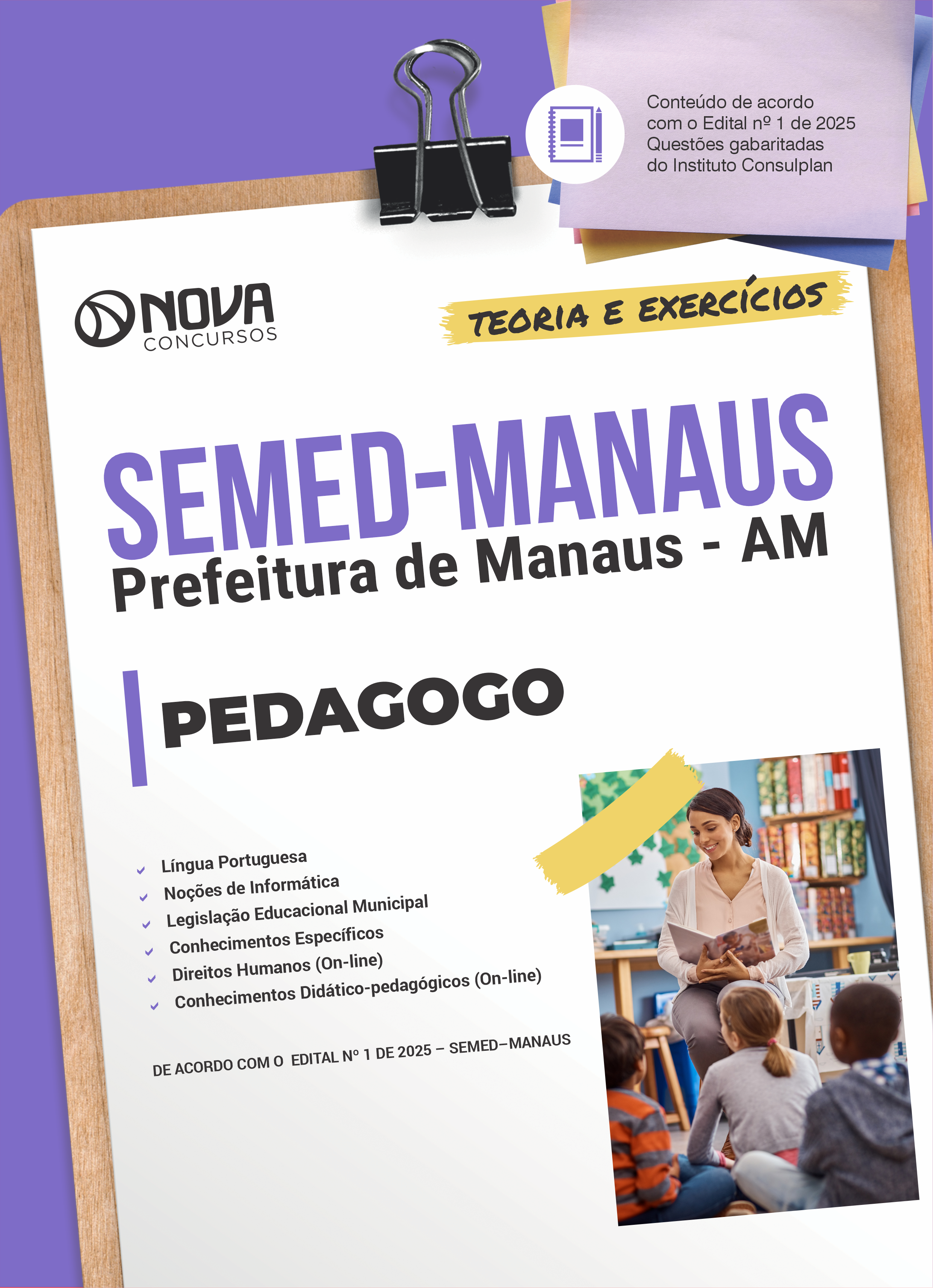Invista em sua preparação e aumente suas chances aumente suas chances de alcançar a sua aprovação com a Secretaria Municipal de Educação de Manaus - AM - SEMED-AM - Pedagogo.