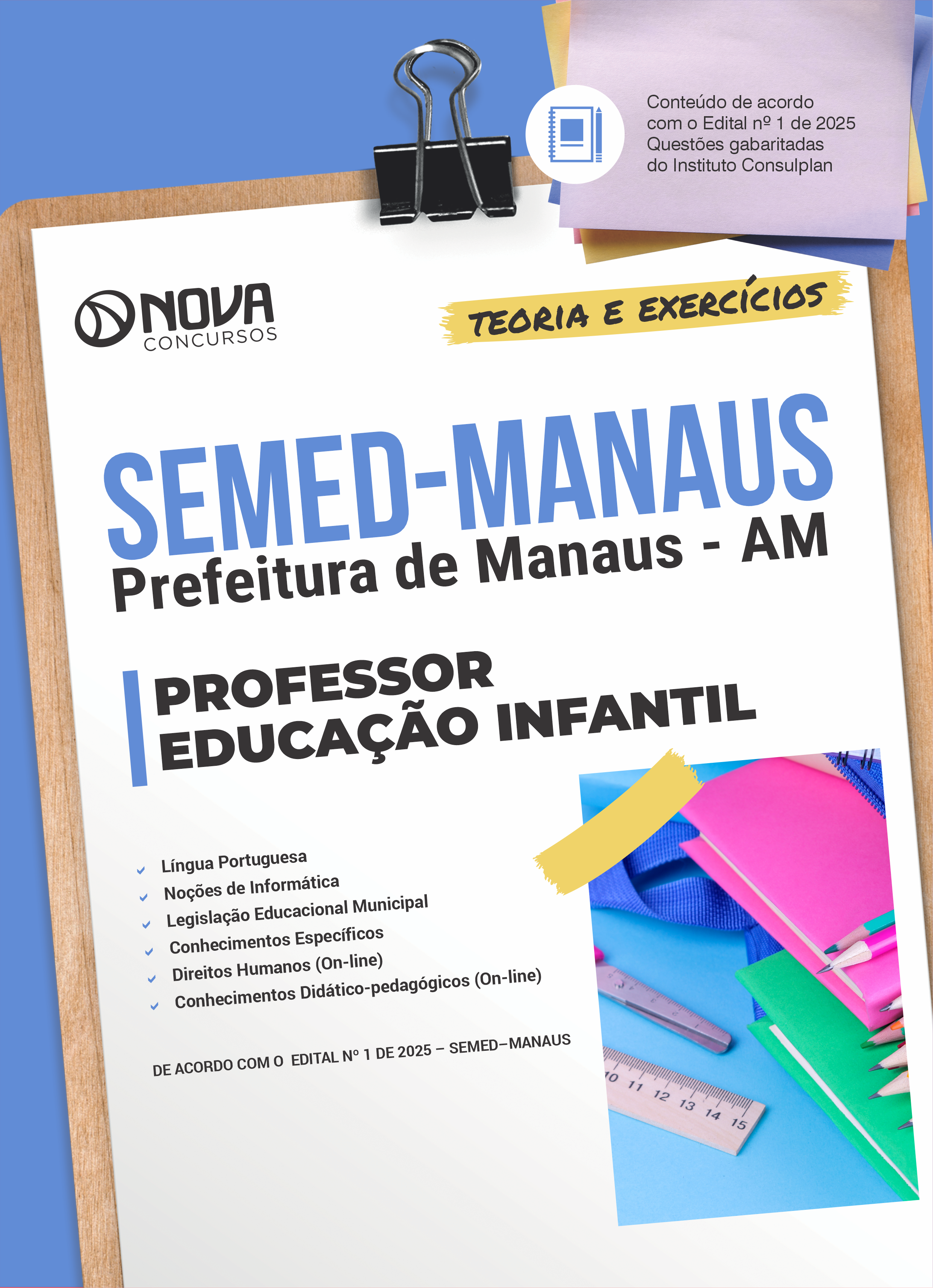 Invista em sua preparação e aumente suas chances aumente suas chances de alcançar a sua aprovação com a apostila da Secretaria Municipal de Educação de Manaus - AM - SEMED-AM - Professor Nível Superior - Educação Infantil.