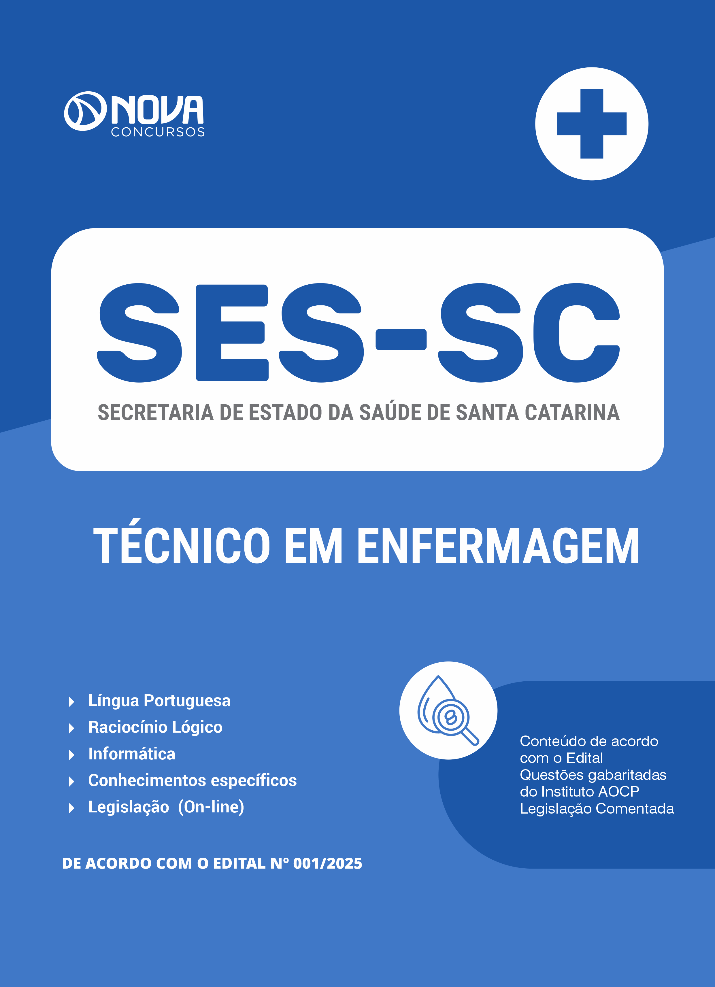 Invista em sua preparação e aumente suas chances de alcançar a sua aprovação com a apostila Secretaria de Estado da Saúde de Santa Catarina - SES-SC - Técnico em Enfermagem.