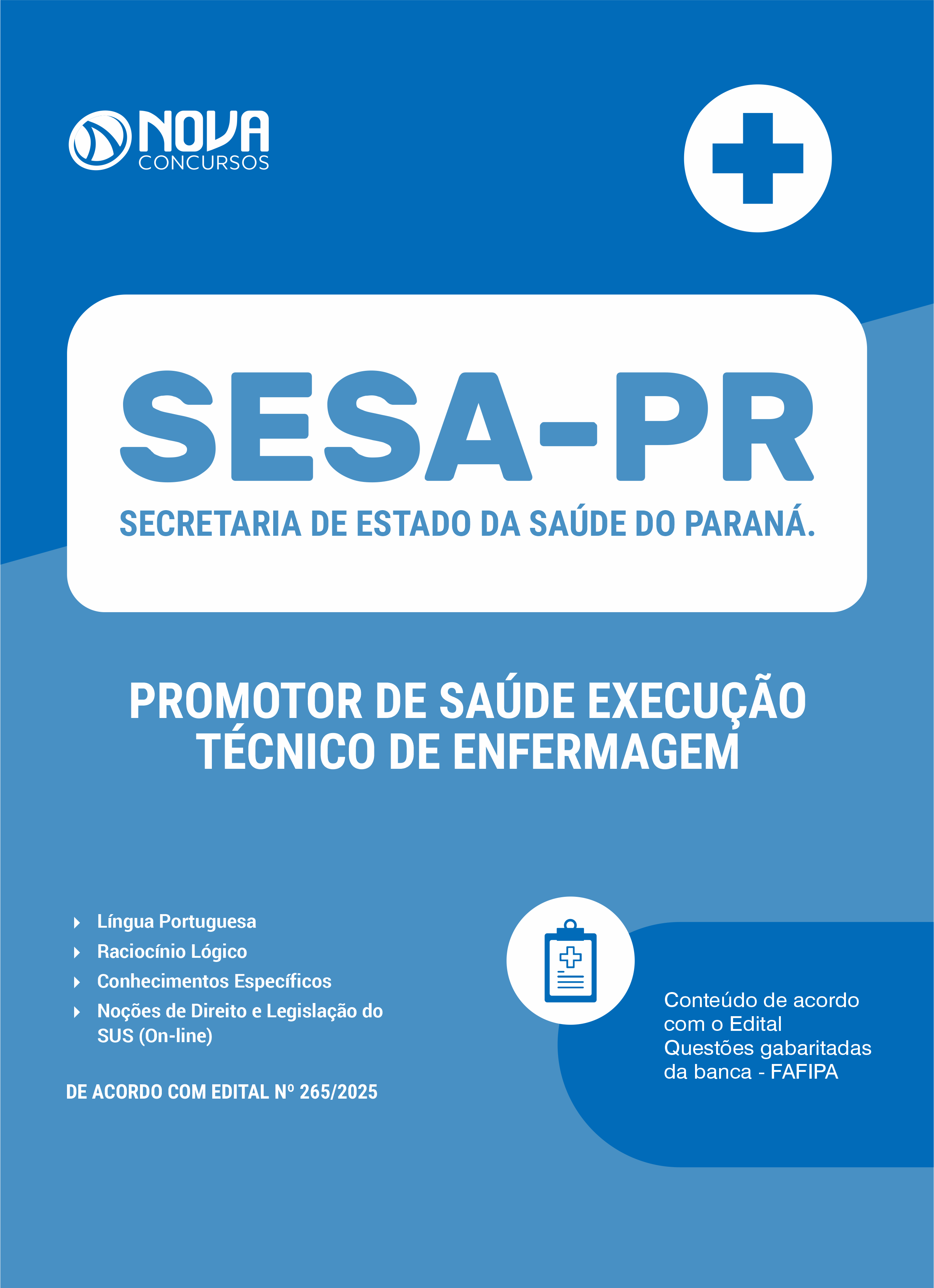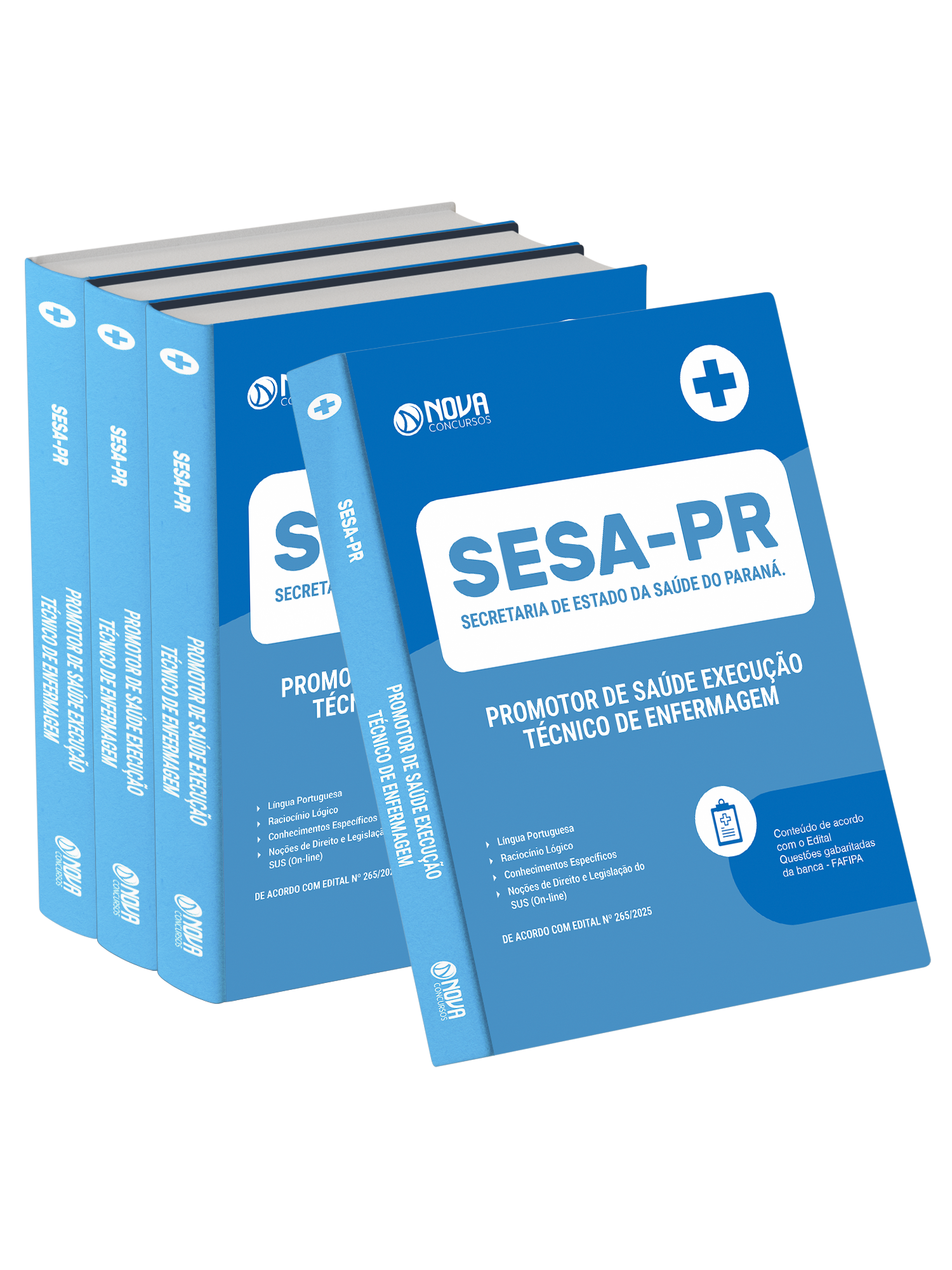 Conquiste sua vaga com a apostila Secretaria de Estado da Saúde do Paraná - SESA-PR! A Nova Concursos está com você nessa jornada!