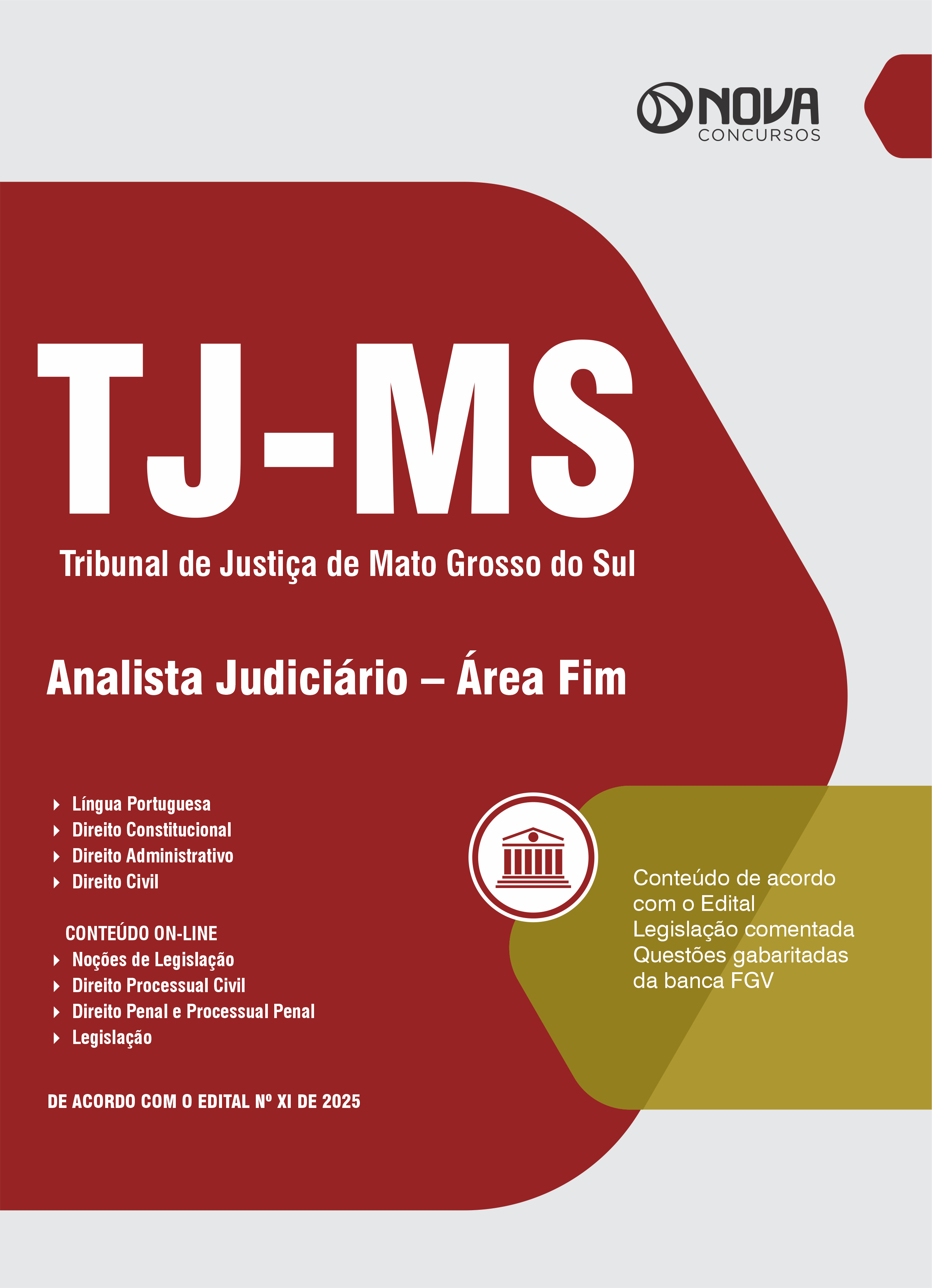 Conquiste sua vaga com a apostila Tribunal de Justiça Mato Grosso do Sul - TJ-MS! A Nova Concursos está com você nessa jornada!