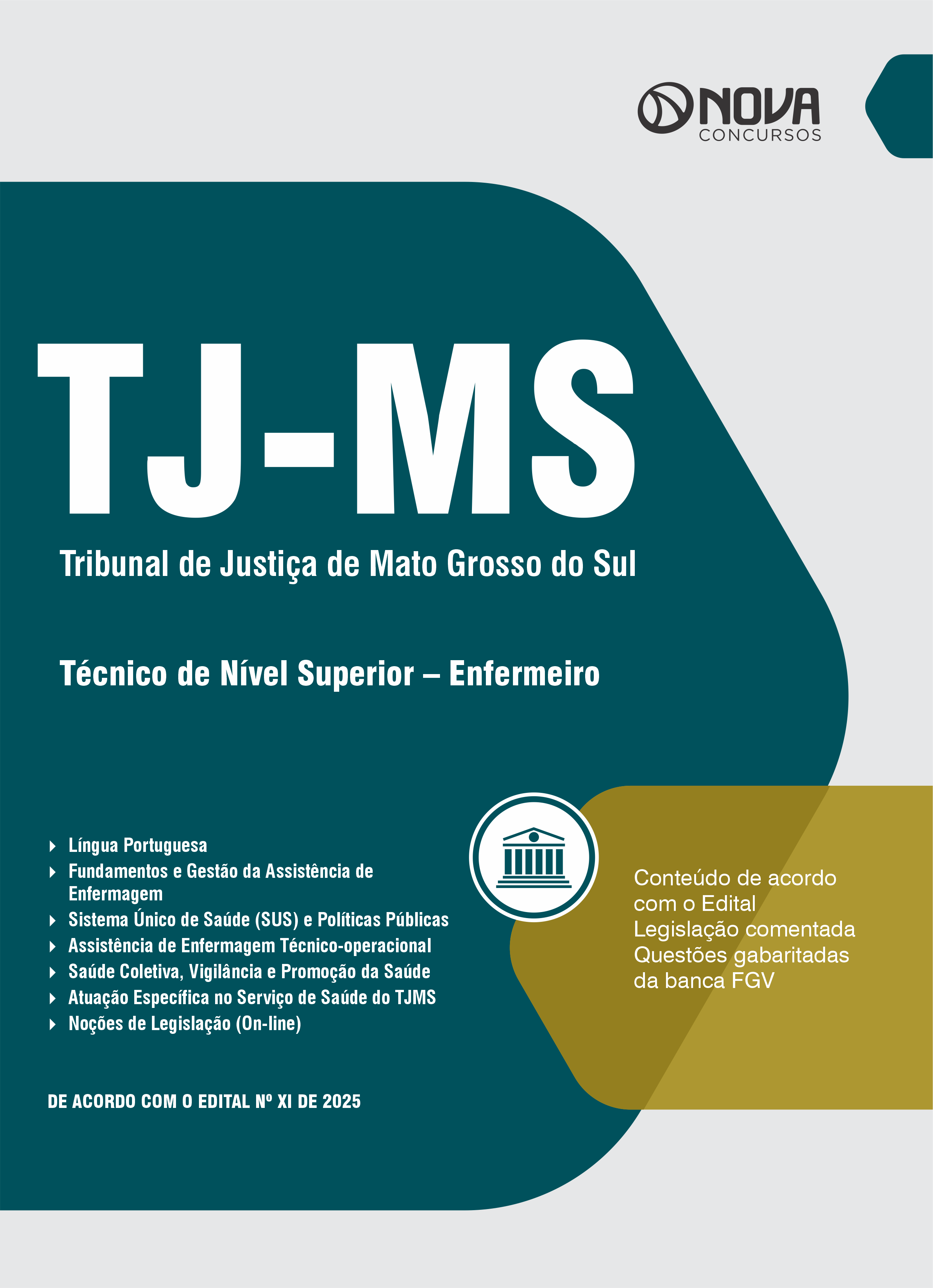 Invista em sua preparação e aumente suas chances de alcançar a sua aprovação com a apostila Tribunal de Justiça Mato Grosso do Sul - TJ-MS - Técnico de Nível Superior - Enfermeiro.