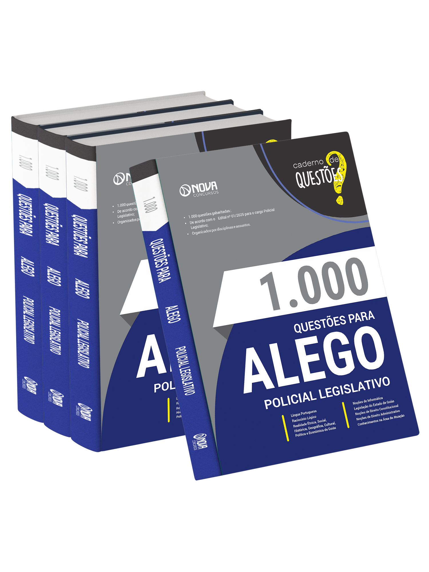 O caderno 1.000 Questões Gabaritadas Assembleia Legislativa do Estado de Goiás - Policial Legislativo tem padrão de livro, capa resistente, é muito bem elaborado e se apresenta como um material indispensável à sua preparação no concurso.