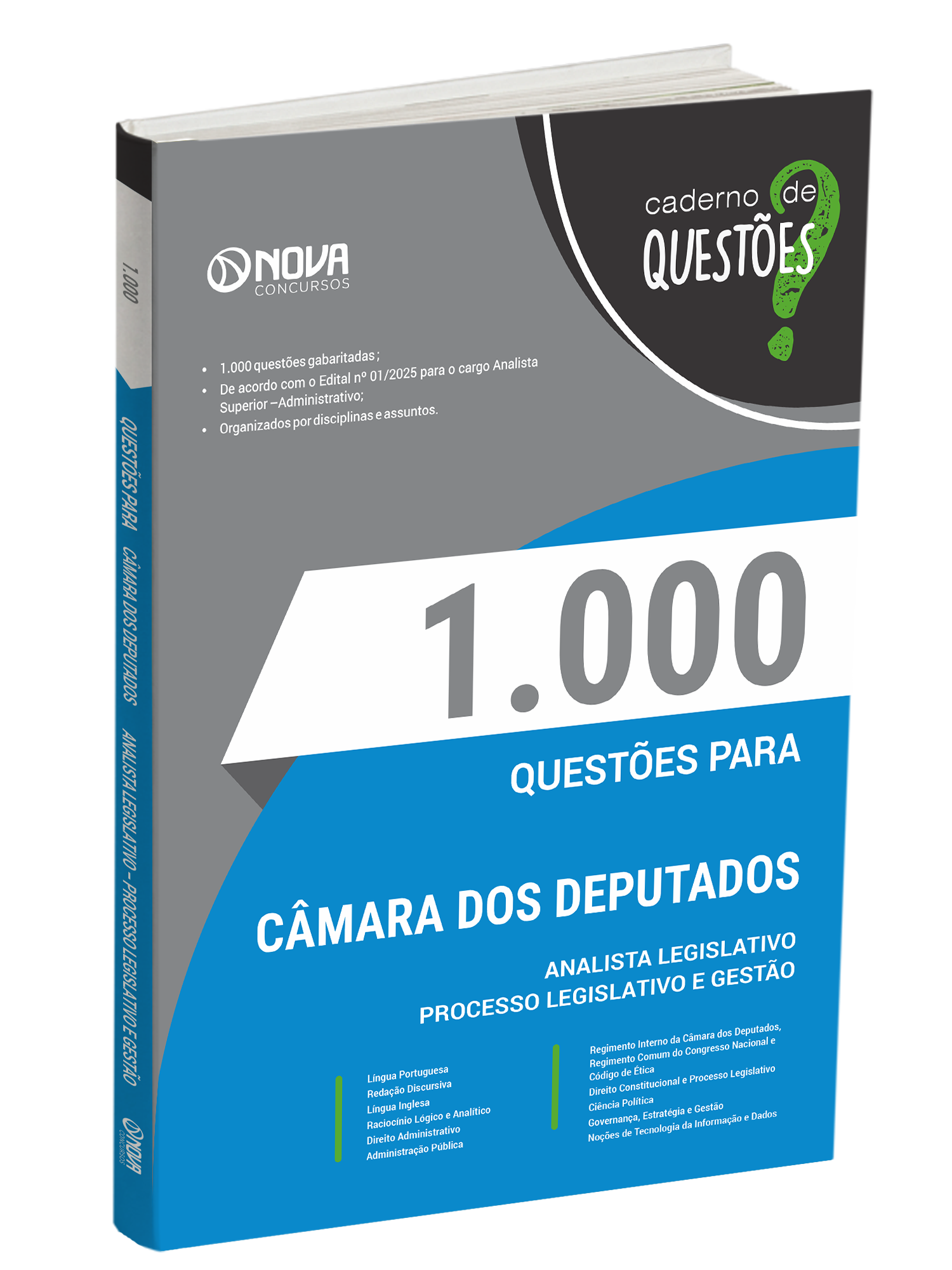O caderno 1.000 Questões Gabaritadas Câmara dos Deputados - Analista Legislativo tem padrão de livro, capa resistente, é muito bem elaborado e se apresenta como um material indispensável à sua preparação no concurso.