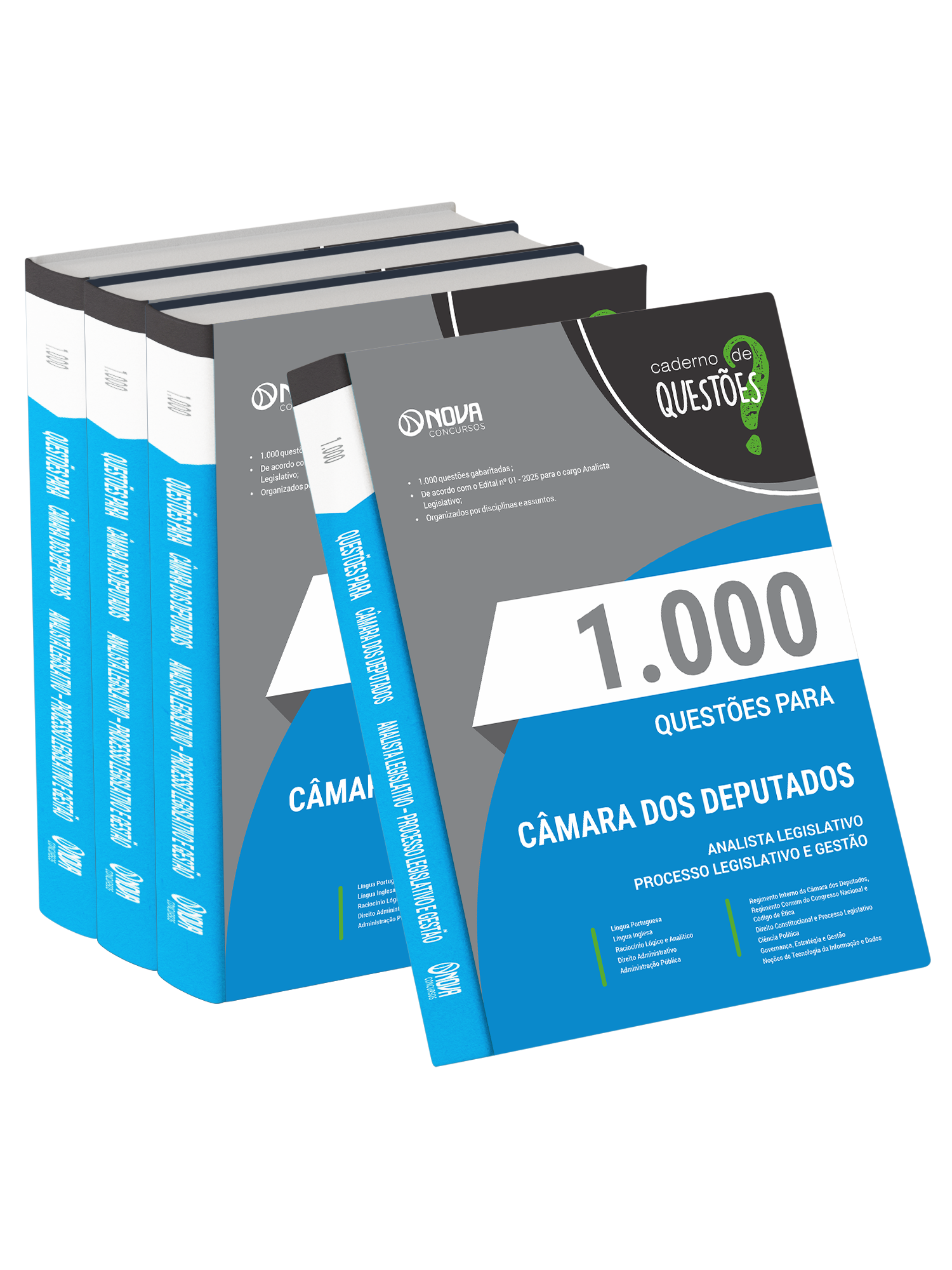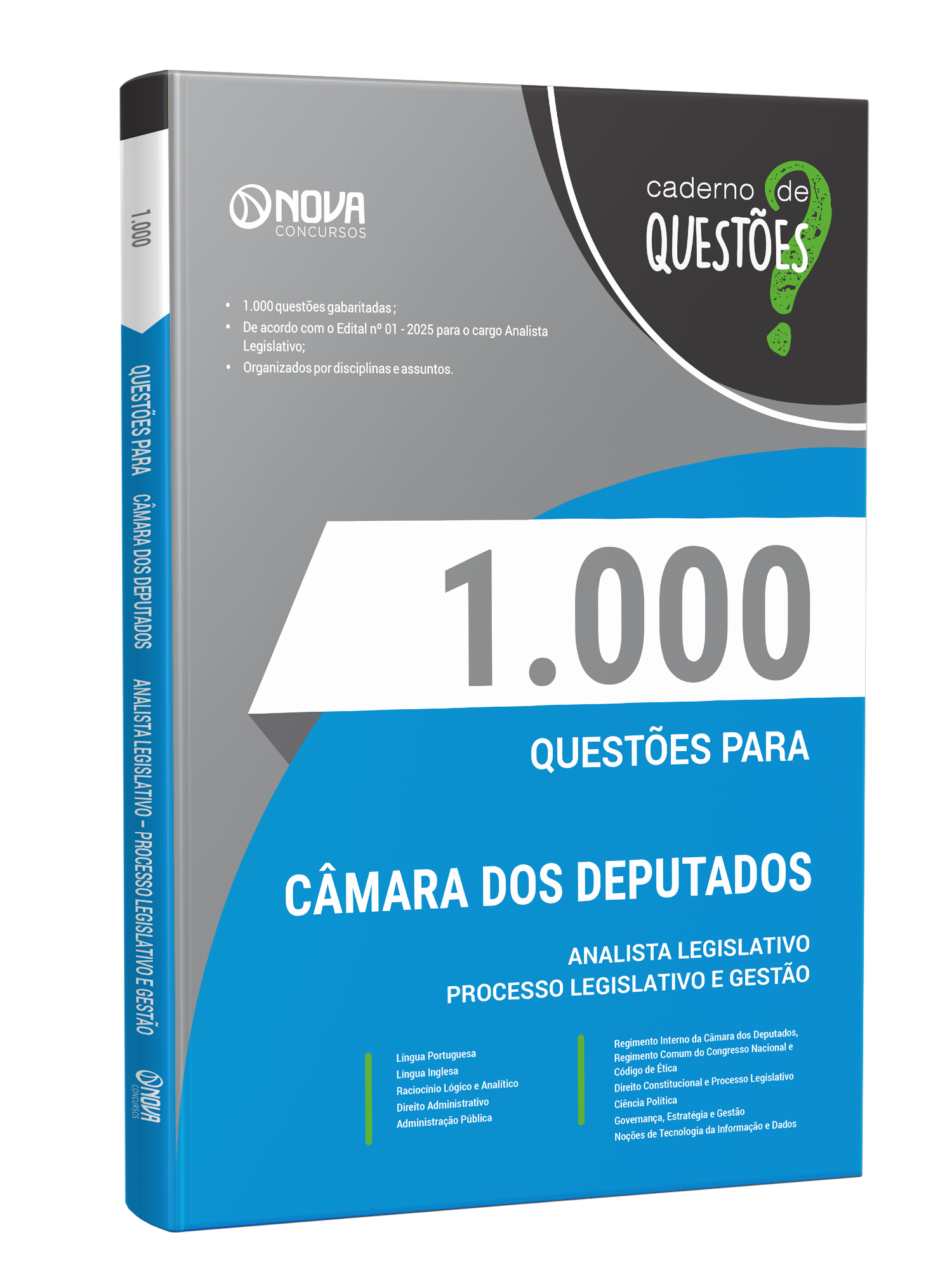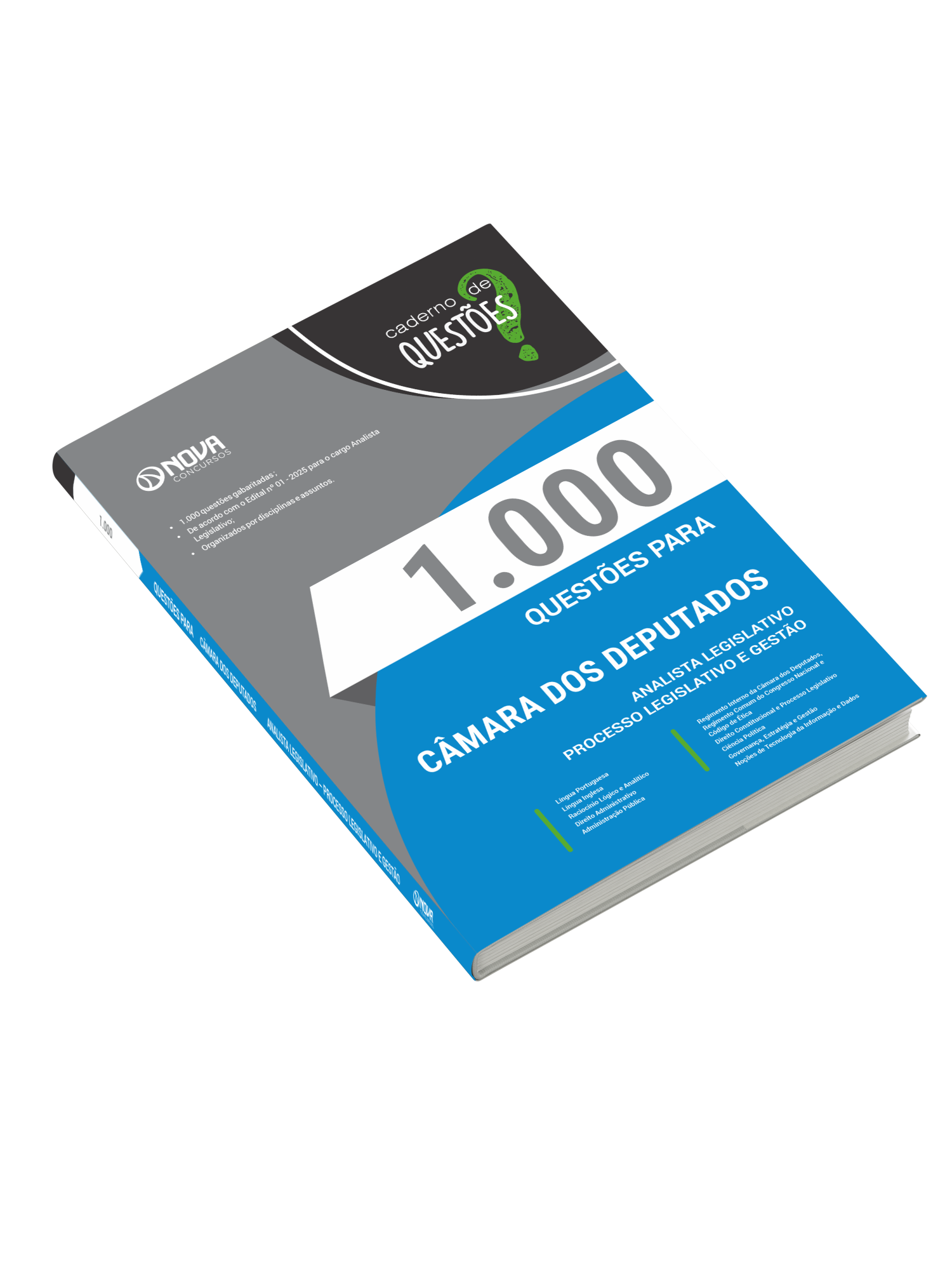 O caderno 1.000 Questões Gabaritadas Câmara dos Deputados - Analista Legislativo tem padrão de livro, capa resistente, é muito bem elaborado e se apresenta como um material indispensável à sua preparação no concurso.