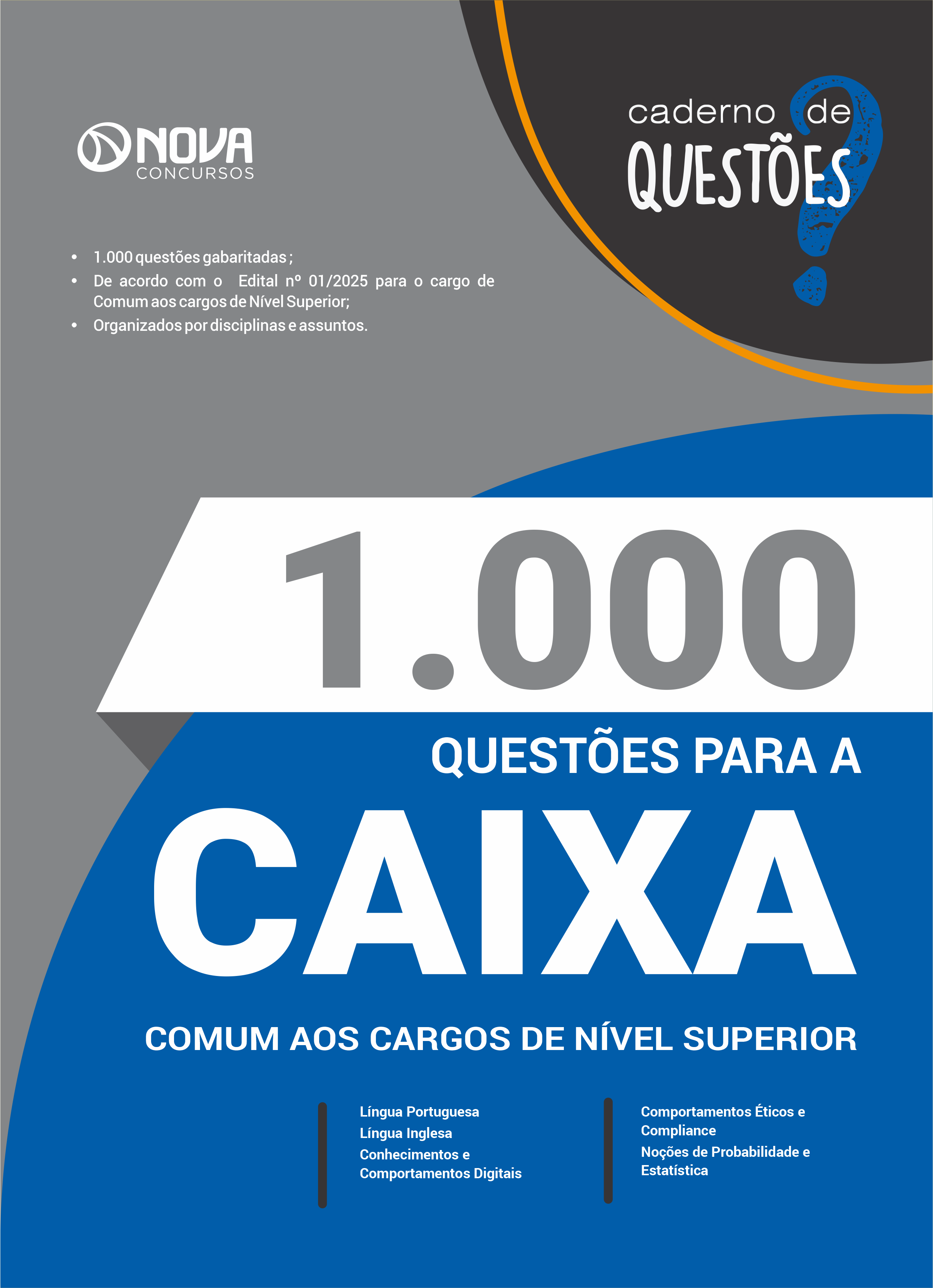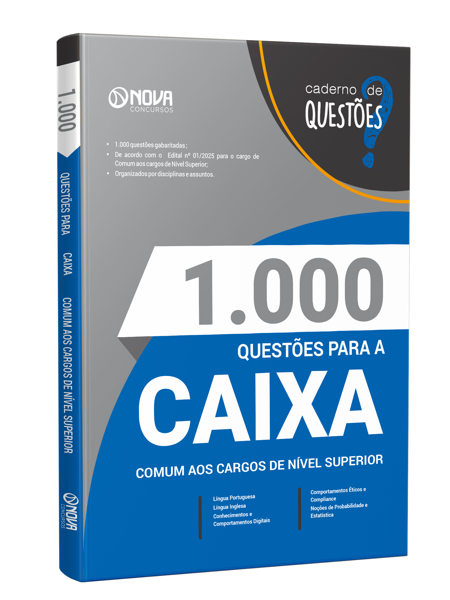 O caderno 1.000 Questões Gabaritadas Caixa Econômica Federal - Conhecimentos Básicos - Comum Nível Superior tem padrão de livro, capa resistente, é muito bem elaborado e se apresenta como um material indispensável à sua preparação no concurso.