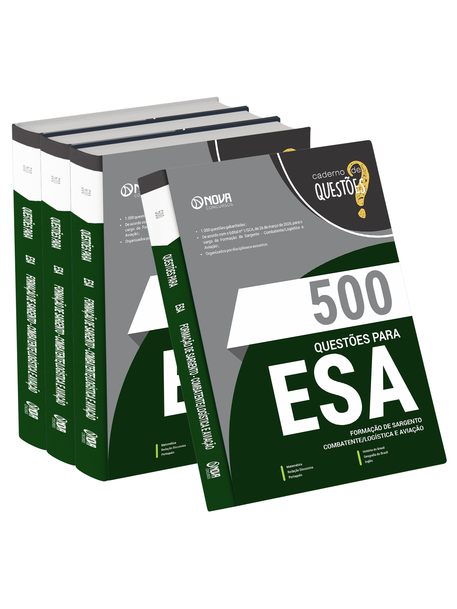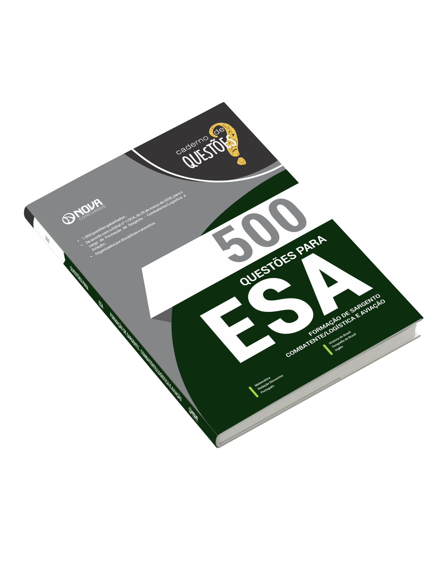 O caderno 500 Questões Gabaritadas Escola de Sargentos das Armas - Curso de Formação de Sargento - Área: Combatente/Logística e Aviação tem padrão de livro, capa resistente, é muito bem elaborado e se apresenta como um material indispensável à sua preparação no concurso.