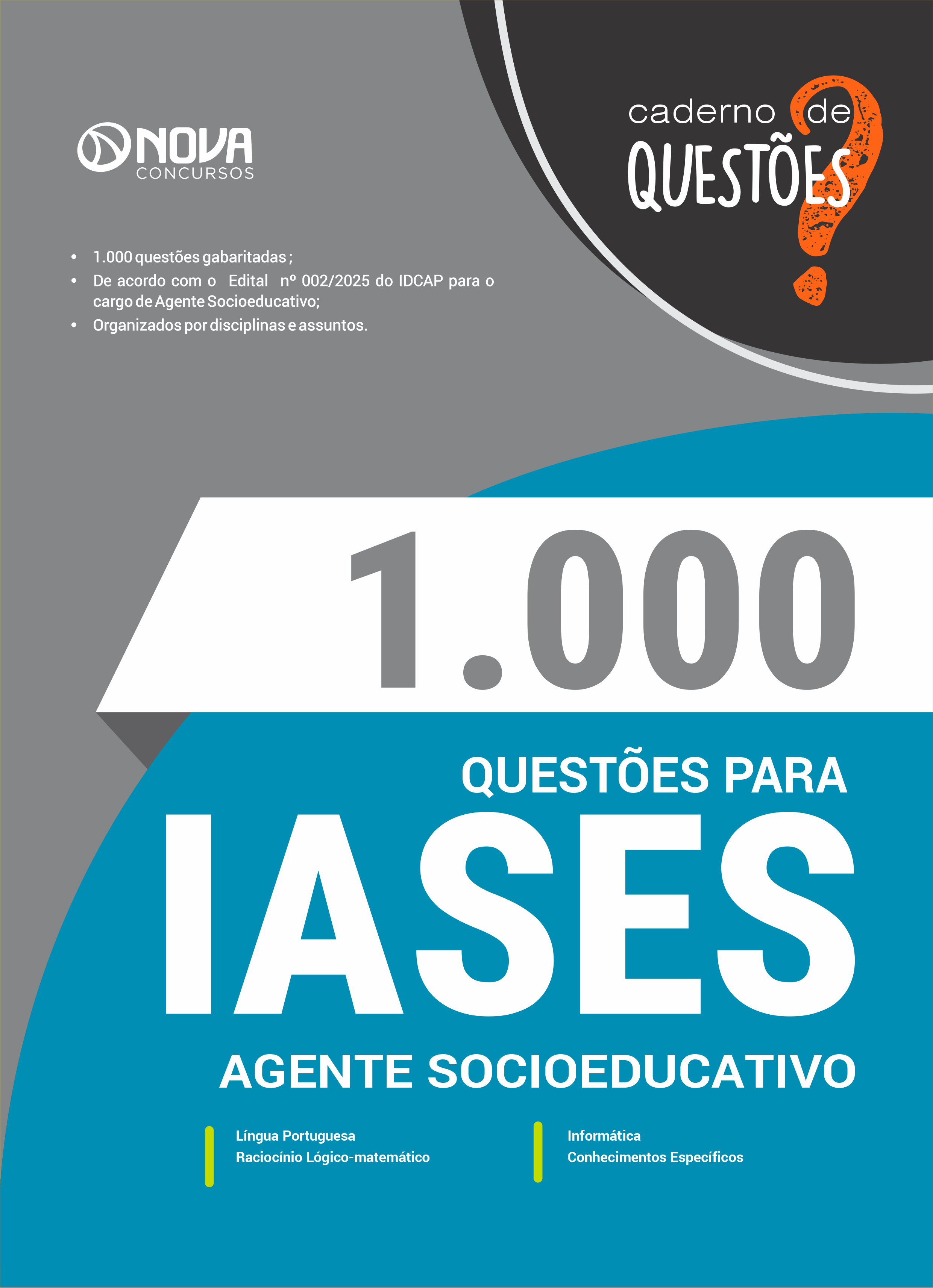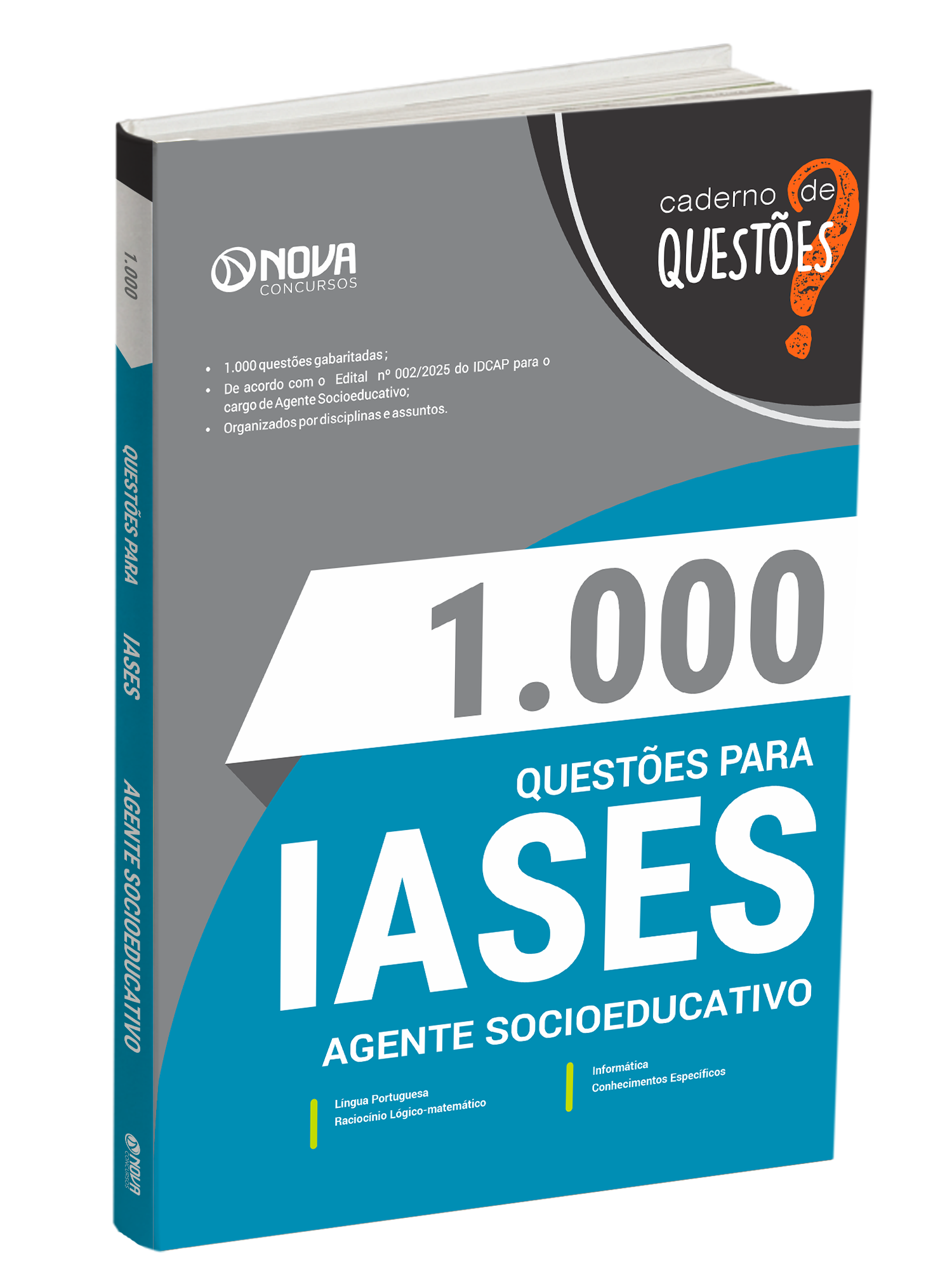 O caderno 1.000 Questões Gabaritadas para a IASES - Agente Socioeducativo tem padrão de livro, capa resistente, é muito bem elaborado e se apresenta como um material indispensável à sua preparação no concurso.