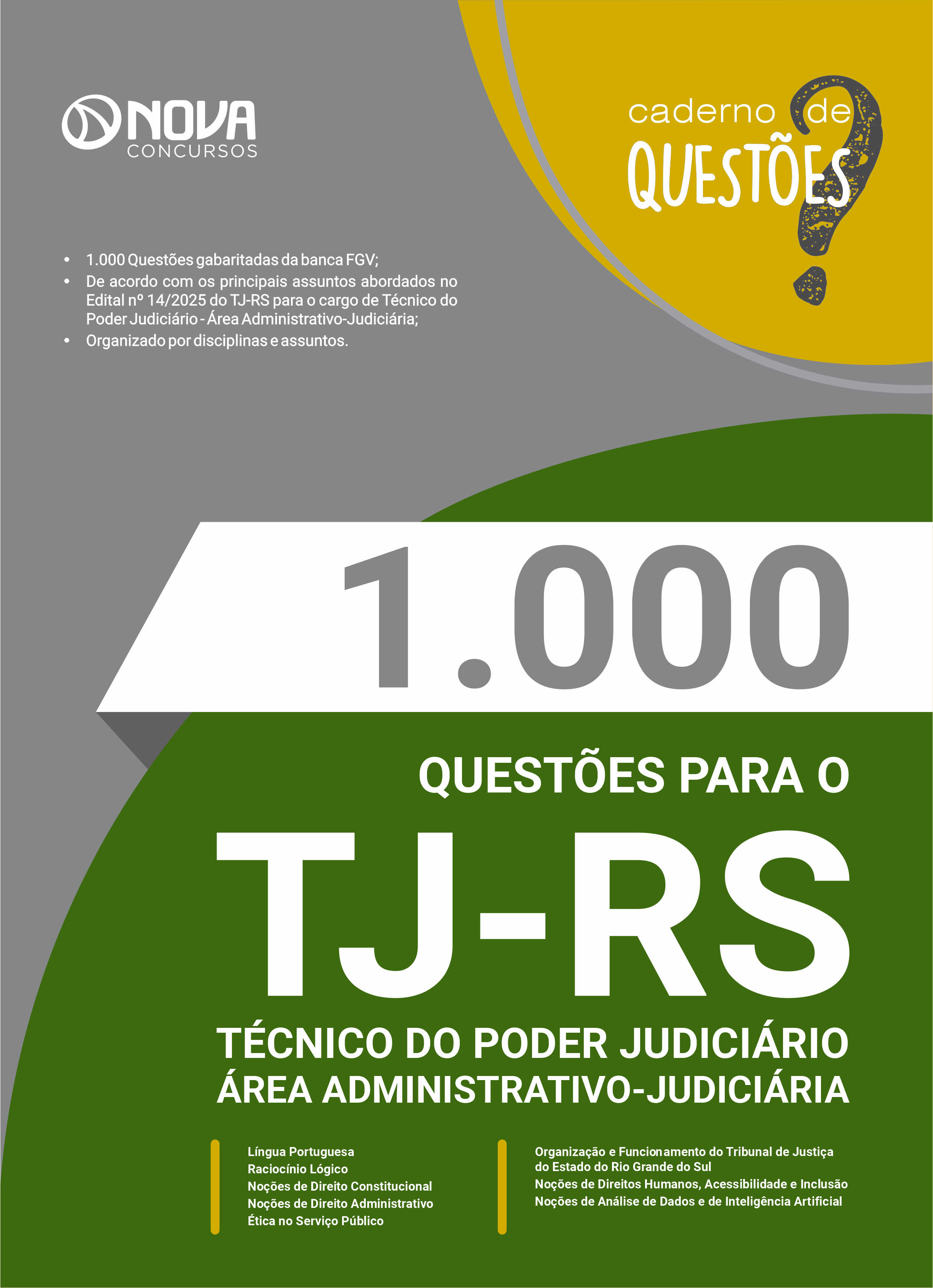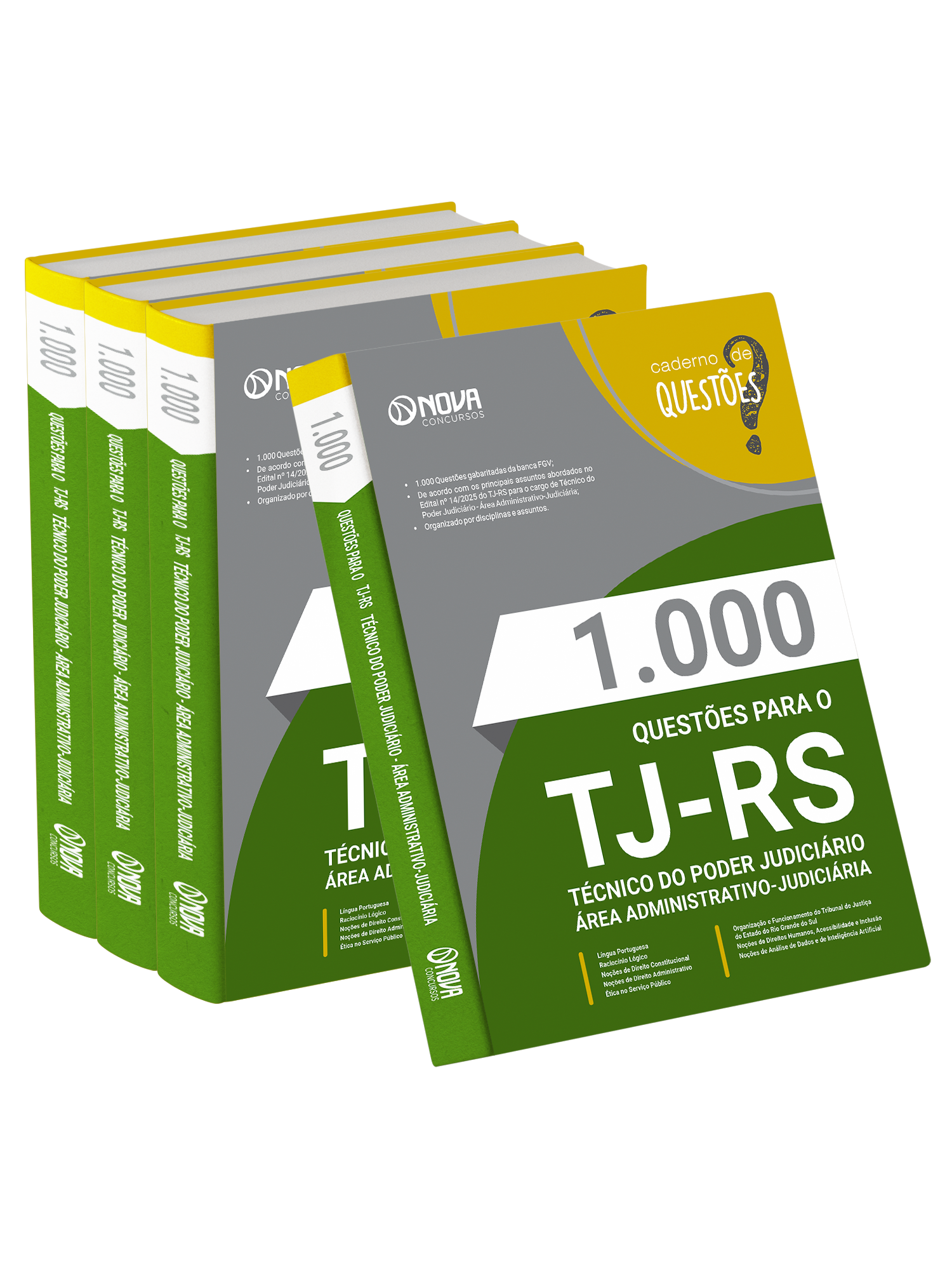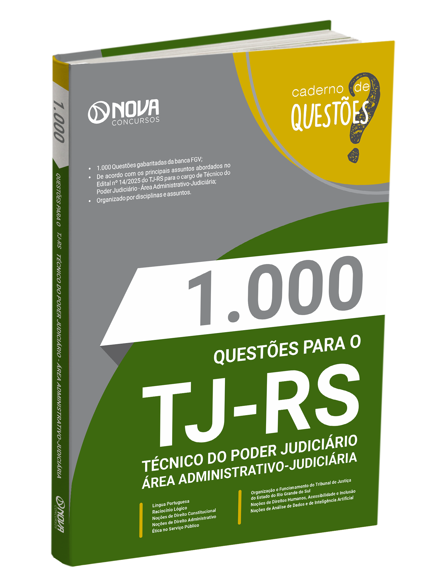 O livro 1.000 Questões Gabaritadas para o TJ-RS - Técnico do Poder Judiciário - Área Administrativo-Judiciária tem padrão de livro, capa resistente, é muito bem elaborado e se apresenta como um material indispensável à sua preparação no concurso.