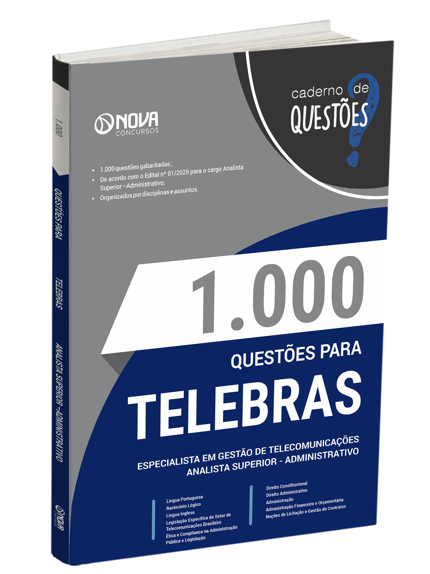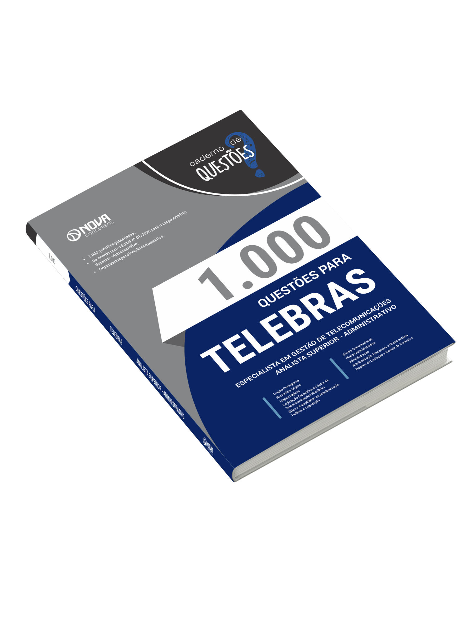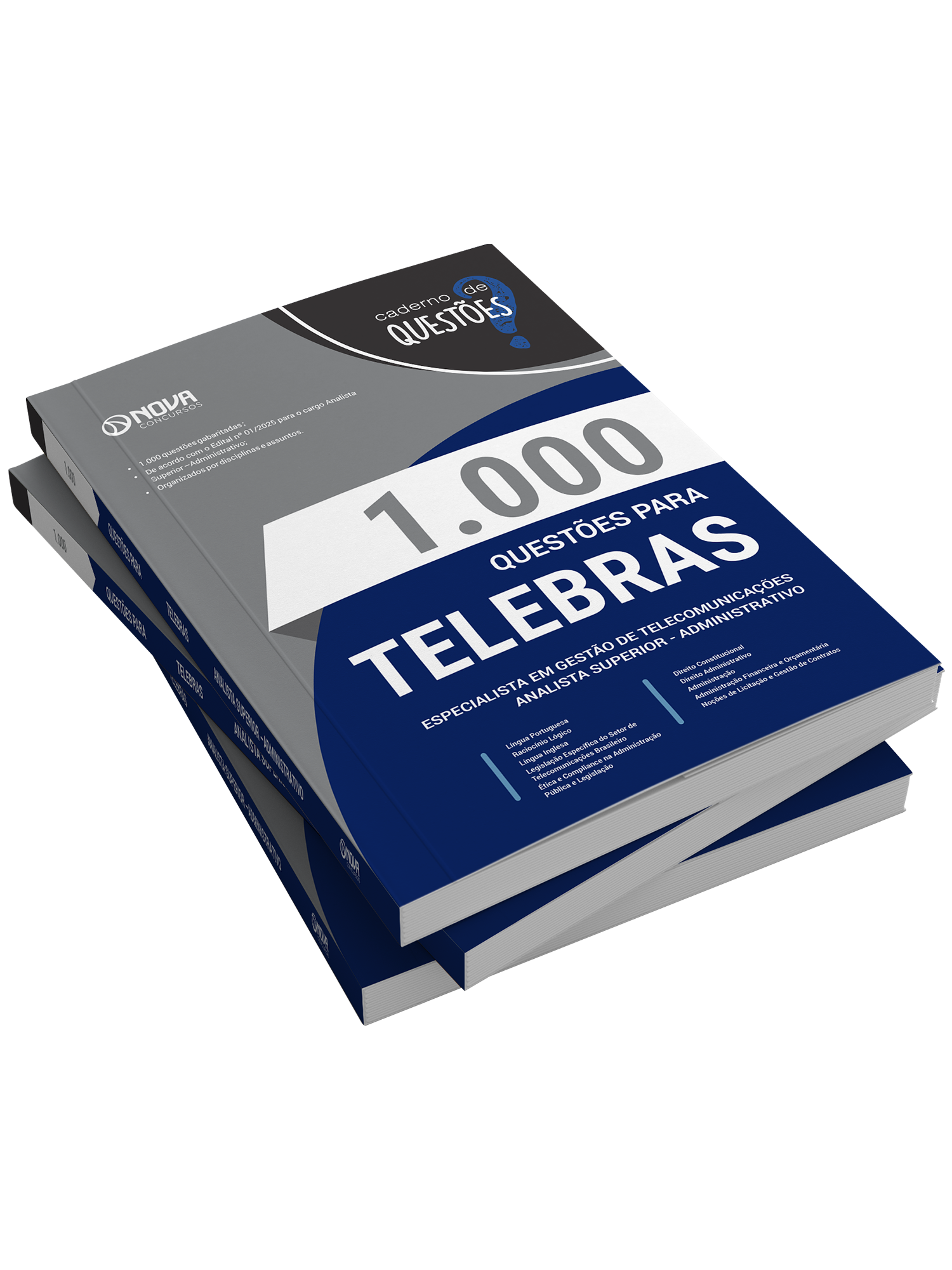 O caderno 1.000 Questões Gabaritadas Telecomunicações Brasileiras S.A. - Especialista em Gestão de Telecomunicações - Analista Superior – Subatividade: Administrativo tem padrão de livro, capa resistente, é muito bem elaborado e se apresenta como um material indispensável à sua preparação no concurso.
