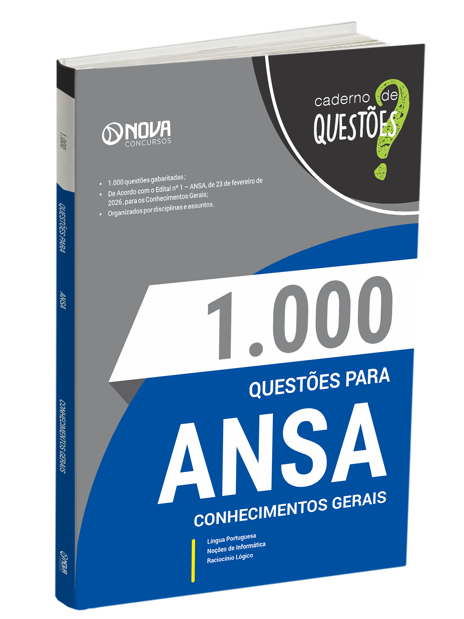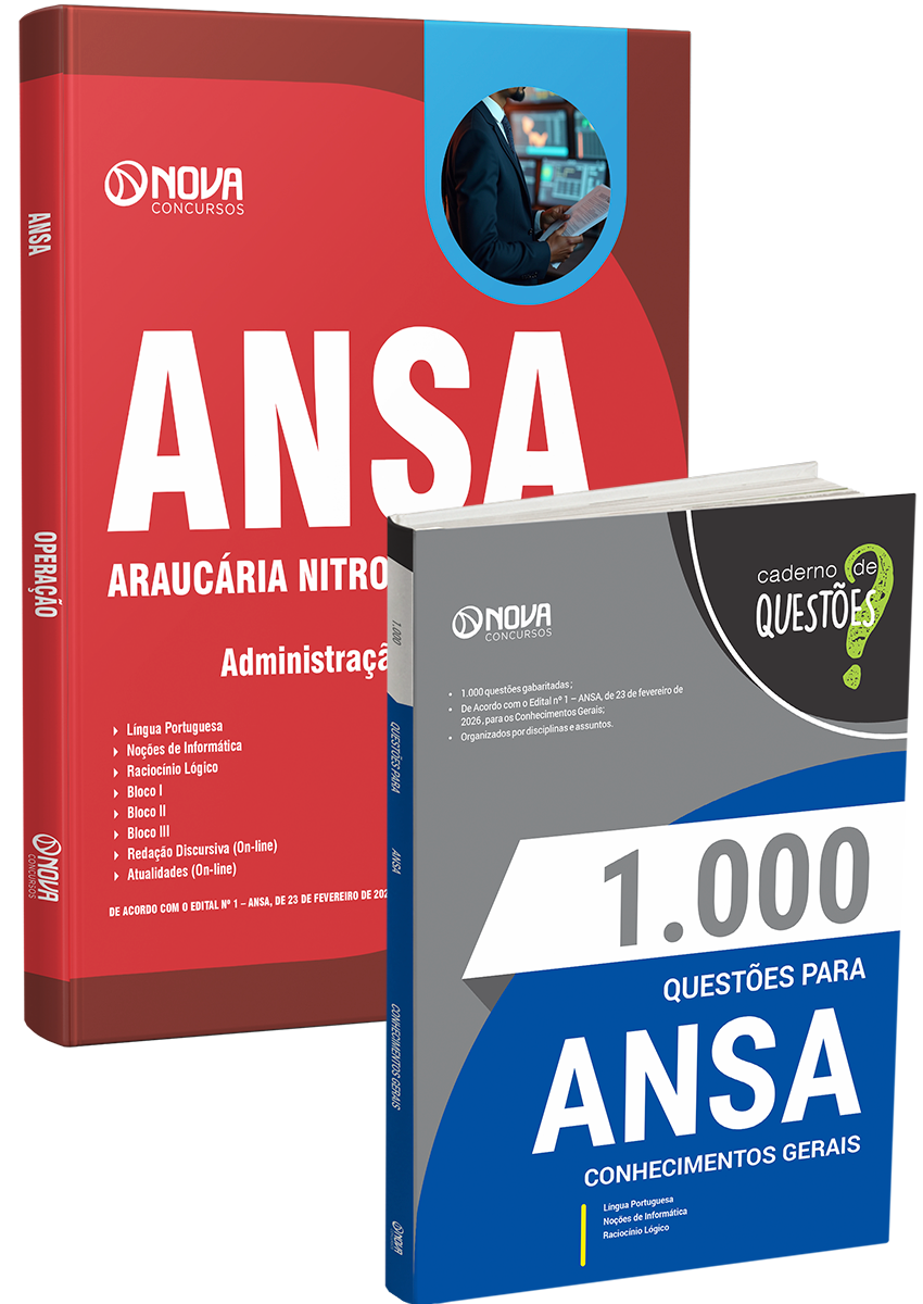 - Livro 1000 QuestƵes Gabaritadas para ANSA - Conhecimentos Gerais: inclui questƵes de concursos recentes da banca organizadora responsƔvel pelo certame do concurso ANSA - AraucƔria Nitrogenados S.A., selecionadas de acordo com os principais assuntos (conhecimentos gerais) cobrados no edital.