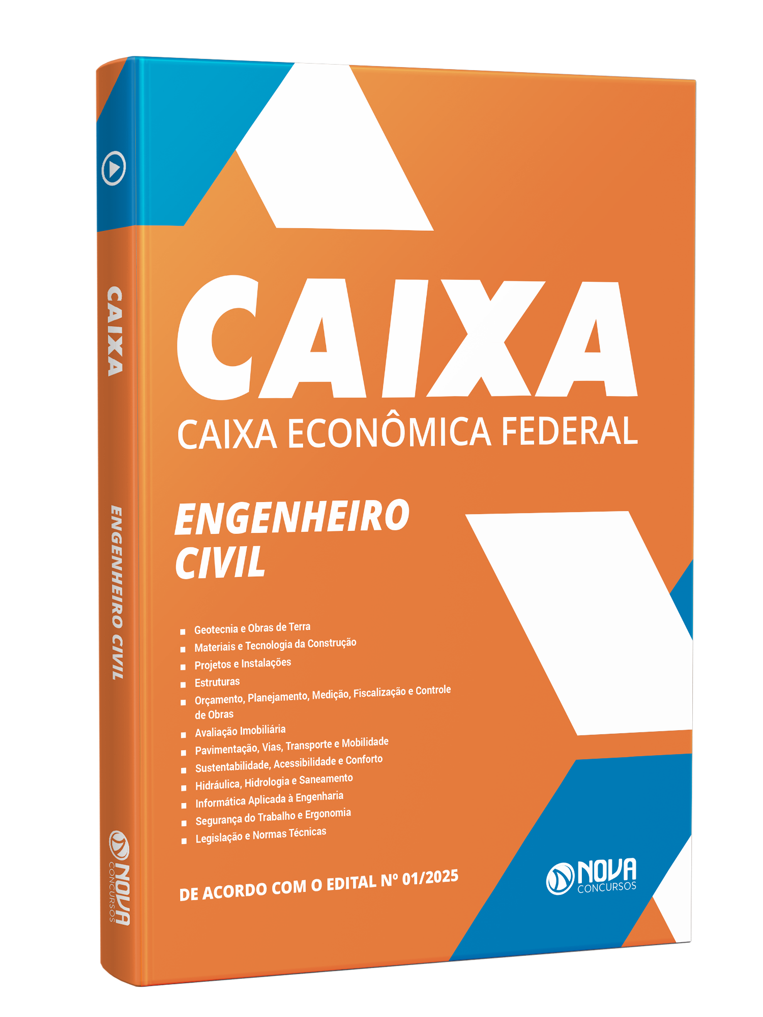 - Apostila CAIXA 2025 - Engenheiro Civil - Conhecimentos Específicos: 100% atualizada e totalmente otimizada para agilizar seus estudos, de acordo com o Edital 01/2025. O material foi elaborado por nosso time de professores especialistas em concursos e organizado para proporcionar uma fácil assimilação do conteúdo.