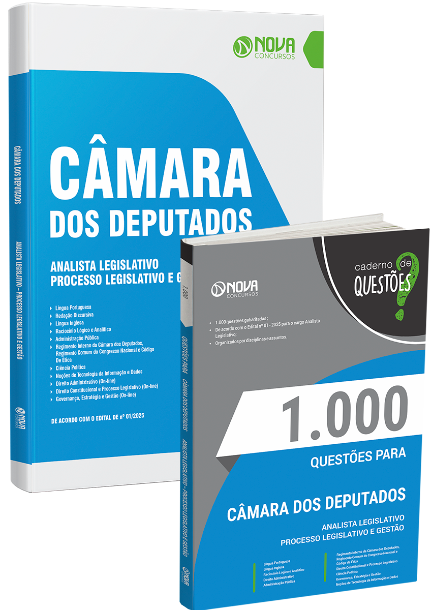 - Apostila Câmara dos Deputados 2026 - Analista Legislativo: 100% atualizada e totalmente otimizada para agilizar seus estudos, de acordo com o Edital 01/2025. O material foi elaborado por nosso time de professores especialistas em concursos e organizado para proporcionar uma fácil assimilação do conteúdo.