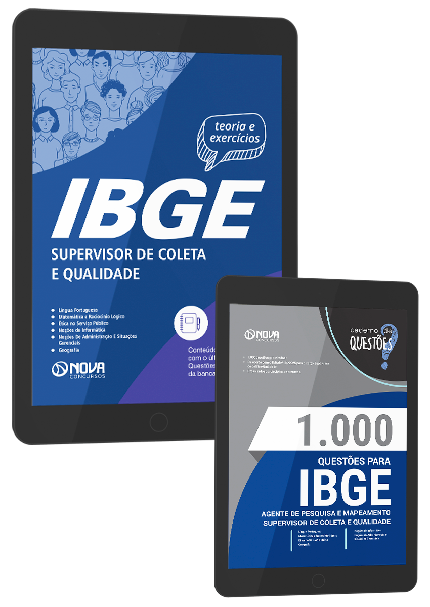 - Livro 1000 Questões Gabaritadas para IBGE - Agente de Pesquisas e Mapeamento (APM) e Supervisor de Coleta e Qualidade (SCQ): inclui questões de concursos recentes da banca FGV, organizadora responsável pelo certame do concurso do Instituto Brasileiro de Geografia e Estatística, selecionadas de acordo com os principais assuntos cobrados no ultimo edital, para os cargos Agente de Pesquisas e Mapeamento (APM) e Supervisor de Coleta e Qualidade (SCQ).