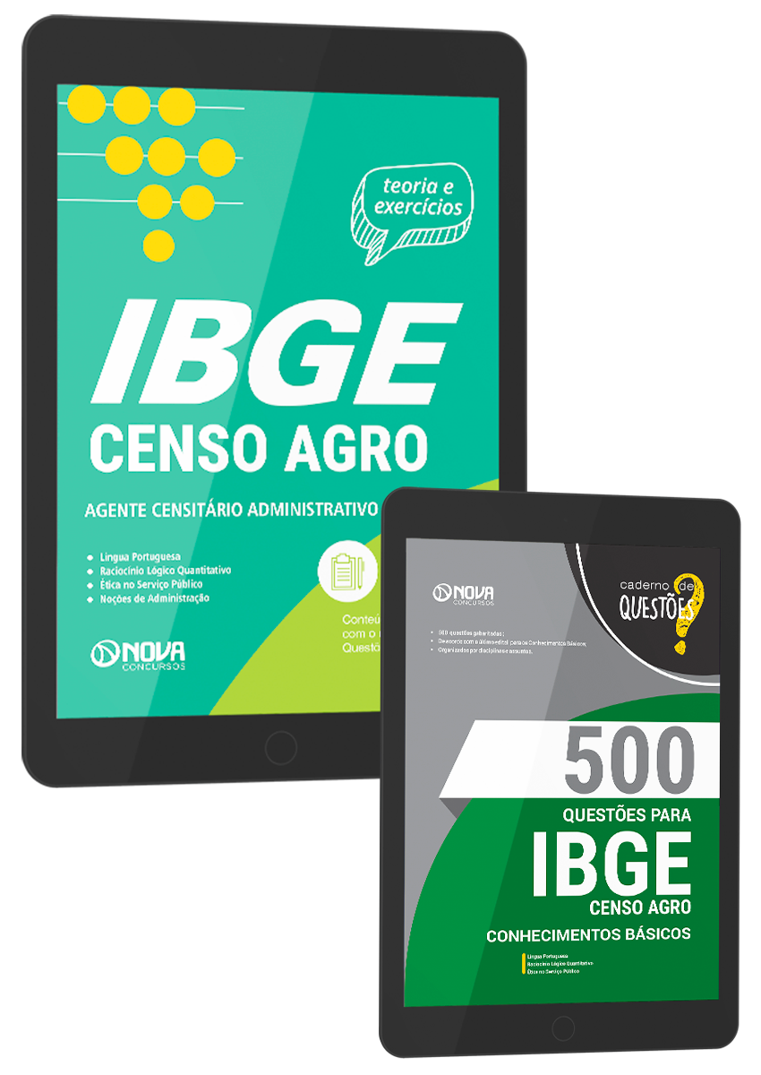 - Livro 500 Questões Gabaritadas para IBGE Temporário 2026 - Censo Agro - Conhecimentos Gerais: inclui questões de concursos recentes, organizadora responsável pelo certame do concurso do IBGE Temporário 2026 - Censo Agro, selecionadas de acordo com os principais assuntos cobrados no ultimo edital.
