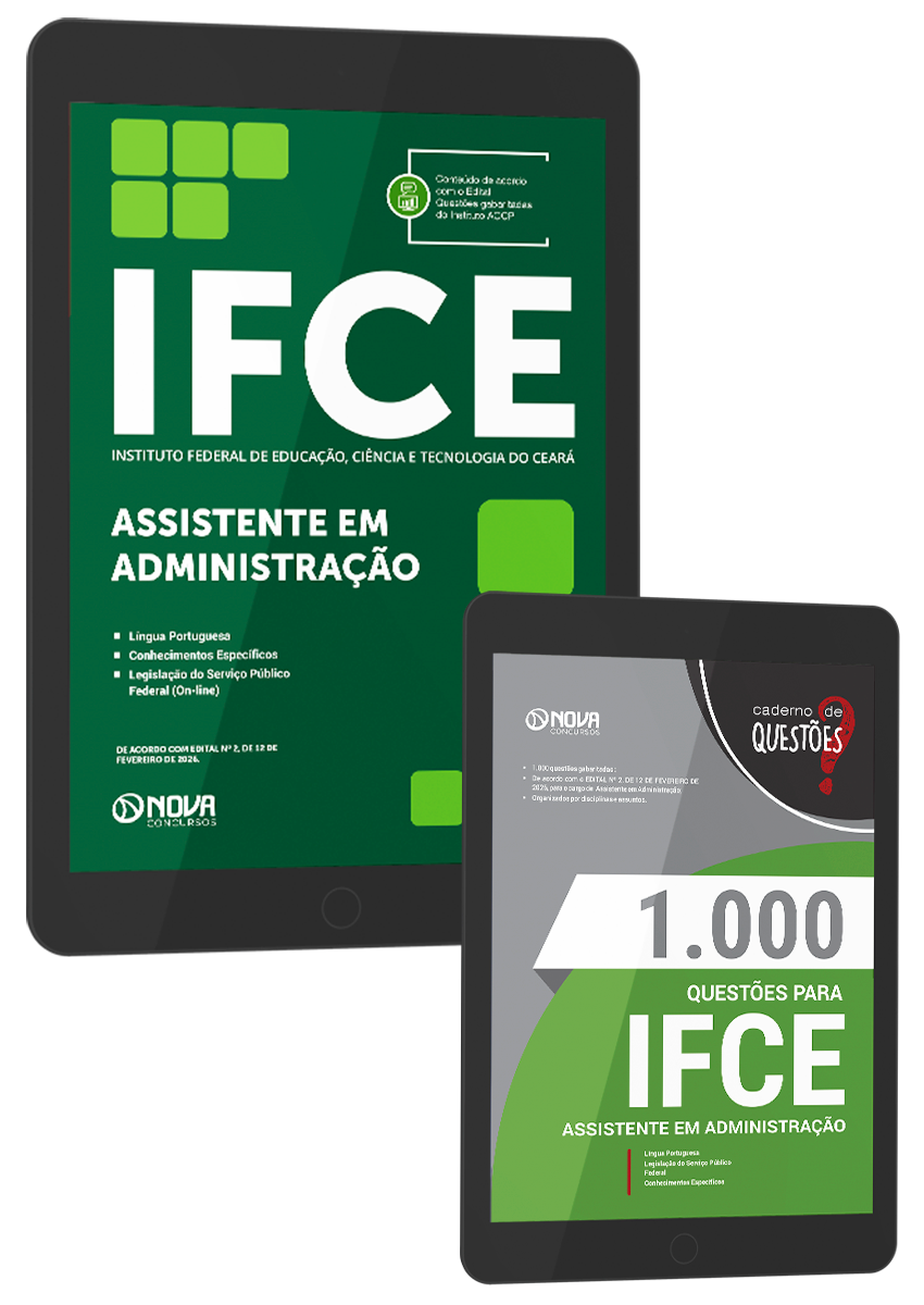 - Apostila IFCE 2026 - Assistente em Administração: 100% atualizada e totalmente otimizada para agilizar seus estudos, de acordo com o Edital 2/2026. O material foi elaborado por nosso time de professores especialistas em concursos e organizado para proporcionar uma fÔcil assimilação do conteúdo.