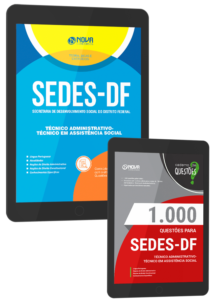- Apostila SEDES-DF 2026 - Técnico Administrativo - Técnico em Assistência Social: 100% atualizada e totalmente otimizada para agilizar seus estudos, de acordo com o último Edital. O material foi elaborado por nosso time de professores especialistas em concursos e organizado para proporcionar uma fácil assimilação do conteúdo.