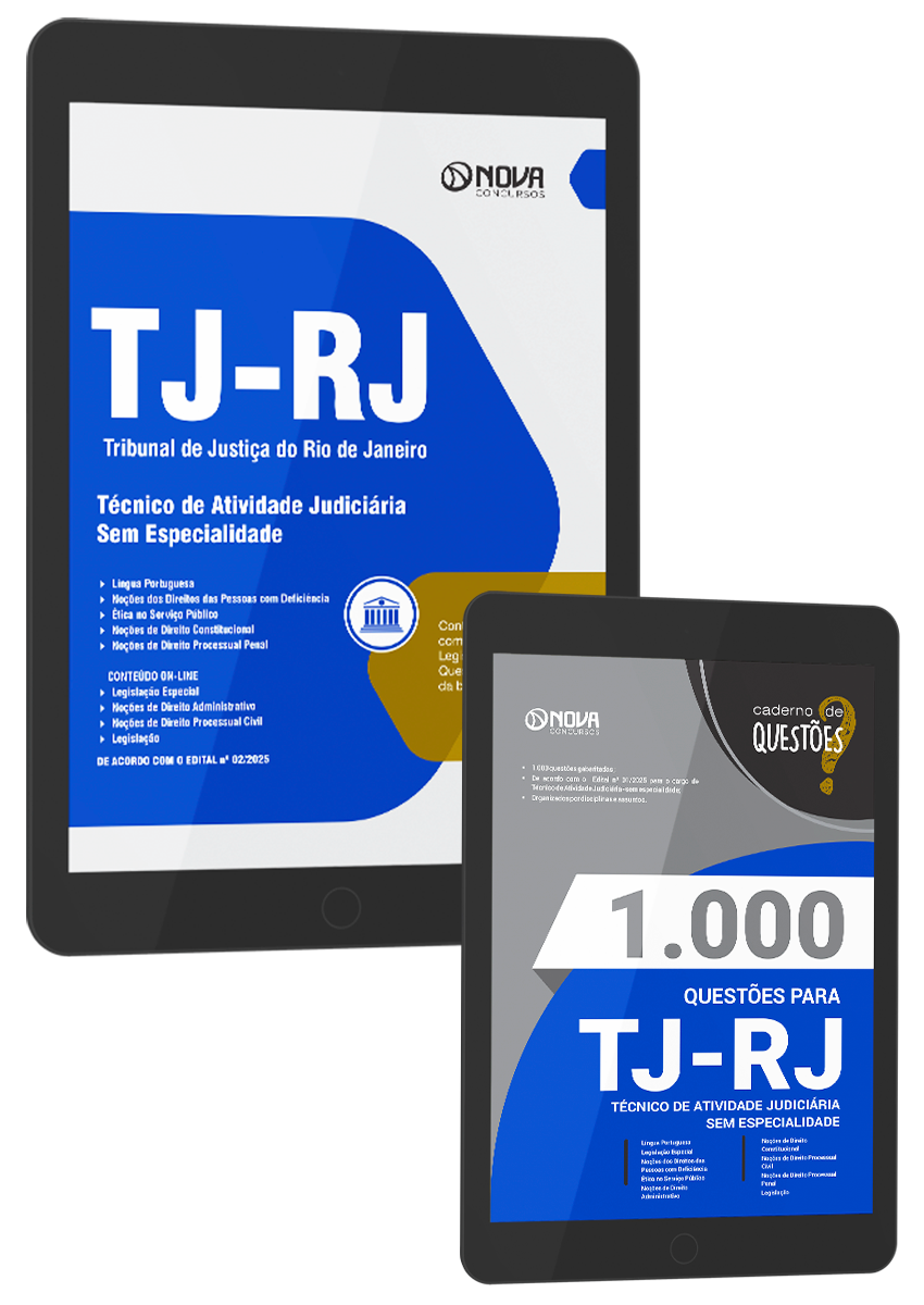 - Apostila TJ-RJ 2025 - Técnico de Atividade Judiciária: 100% atualizada e totalmente otimizada para agilizar seus estudos, de acordo com o Edital 02/2025. O material foi elaborado por nosso time de professores especialistas em concursos e organizado para proporcionar uma fácil assimilação do conteúdo.