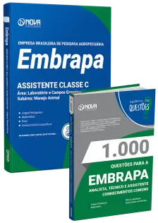 - Apostila EMBRAPA 2024 - Assistente Classe C – Área: Laboratório e Campos Experienciais – Subárea: Manejo Animal: 100% atualizada e totalmente otimizada para agilizar seus estudos, de acordo com o Edital 1/2024. O material foi elaborado por nosso time de professores especialistas em concursos e organizado para proporcionar uma fácil assimilação do conteúdo.