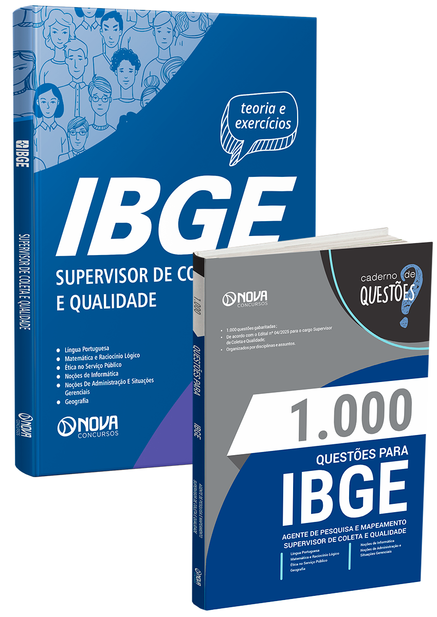 - Apostila IBGE 2025 - Supervisor de Coleta e Qualidade (SCQ): 100% atualizada e totalmente otimizada para agilizar seus estudos, de acordo com o Edital 5/2025. O material foi elaborado por nosso time de professores especialistas em concursos e organizado para proporcionar uma fácil assimilação do conteúdo.