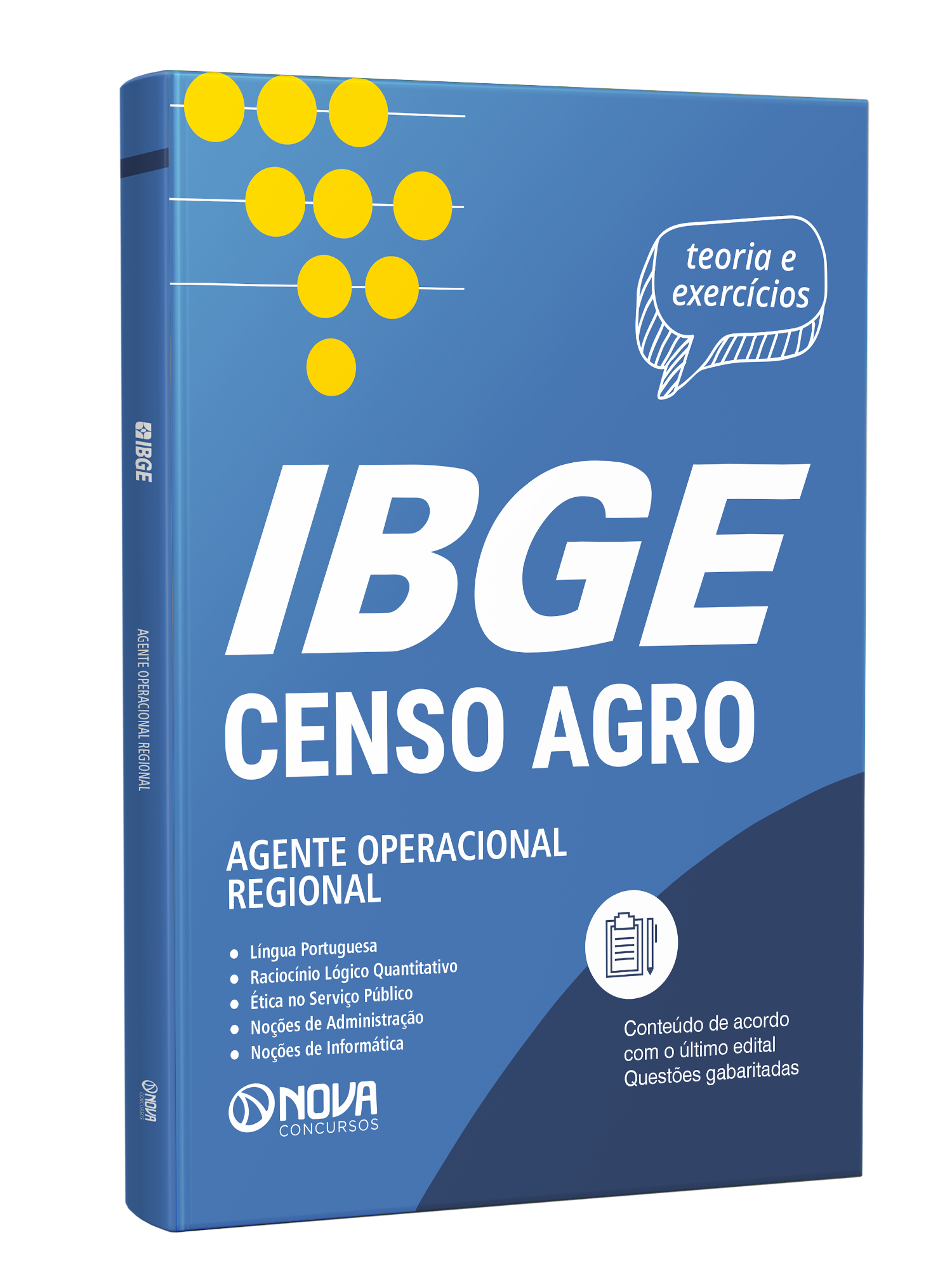 - Apostila IBGE Temporário 2026 - Censo Agro - Agente Operacional Regional: 100% atualizada e totalmente otimizada para agilizar seus estudos, de acordo com o último Edital. O material foi elaborado por nosso time de professores especialistas em concursos e organizado para proporcionar uma fácil assimilação do conteúdo.