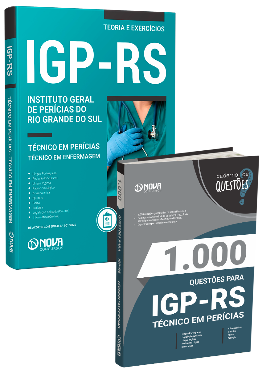 - Apostila IGP-RS 2025 - Técnico em Perícias - Técnico em Enfermagem: 100% atualizada e totalmente otimizada para agilizar seus estudos, de acordo com o Edital 01/2025. O material foi elaborado por nosso time de professores especialistas em concursos e organizado para proporcionar uma fácil assimilação do conteúdo.