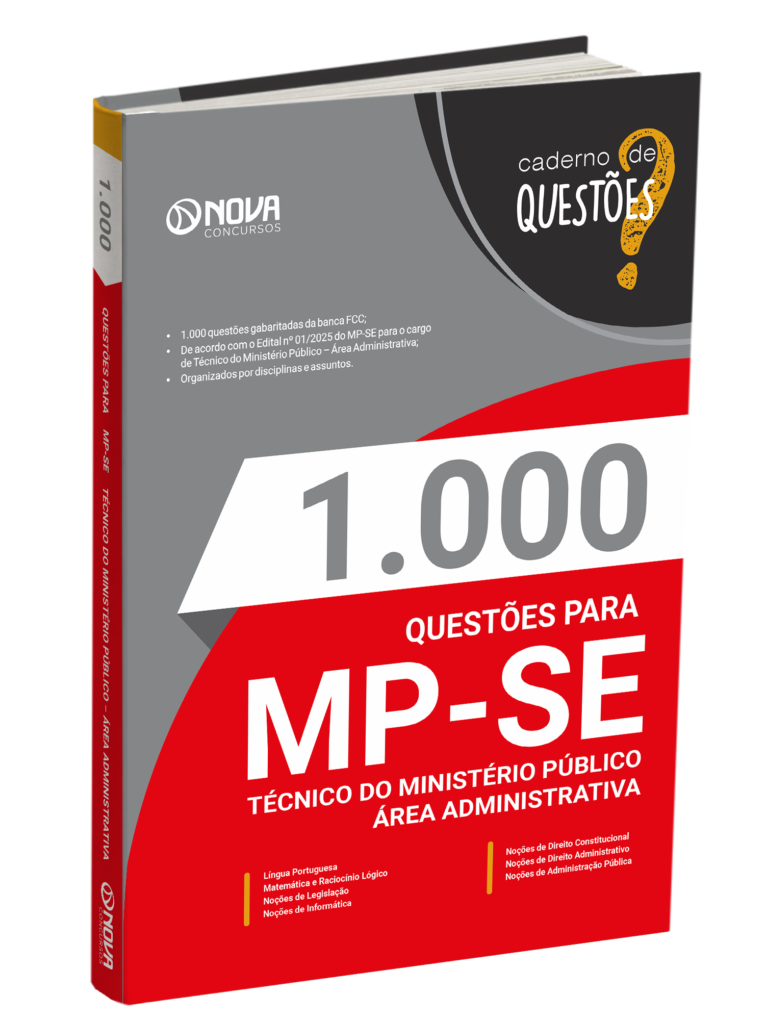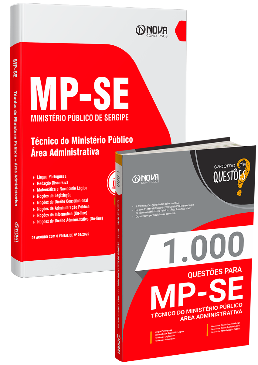 - Livro 1.000 Questões Gabaritadas para o MP-SE - Técnico do Ministério Público - Área Administrativa: inclui questões de concursos recentes da banca, organizadora responsável pelo certame do concurso do Ministério Público de Sergipe, selecionadas de acordo com os principais assuntos cobrados no ultimo edital, para o cargo de Técnico do Ministério Público - Área Administrativa.
