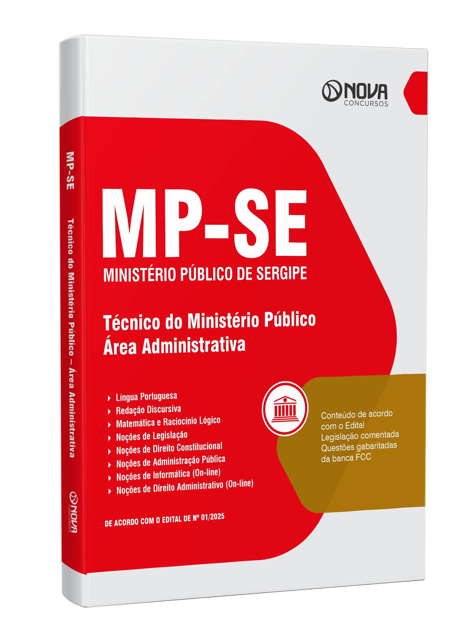 - Apostila MP-SE 2025 - Técnico do Ministério Público - Área Administrativa: 100% atualizada e totalmente otimizada para agilizar seus estudos, de acordo com o Edital 01/2025. O material foi elaborado por nosso time de professores especialistas em concursos e organizado para proporcionar uma fácil assimilação do conteúdo.
