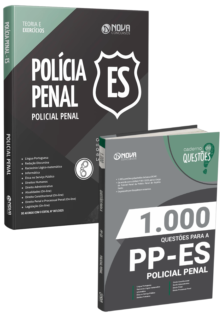- Apostila PP-ES 2025 - Policia Penal: 100% atualizada e totalmente otimizada para agilizar seus estudos, de acordo com o Edital 001/2025. O material foi elaborado por nosso time de professores especialistas em concursos e organizado para proporcionar uma fácil assimilação do conteúdo.
