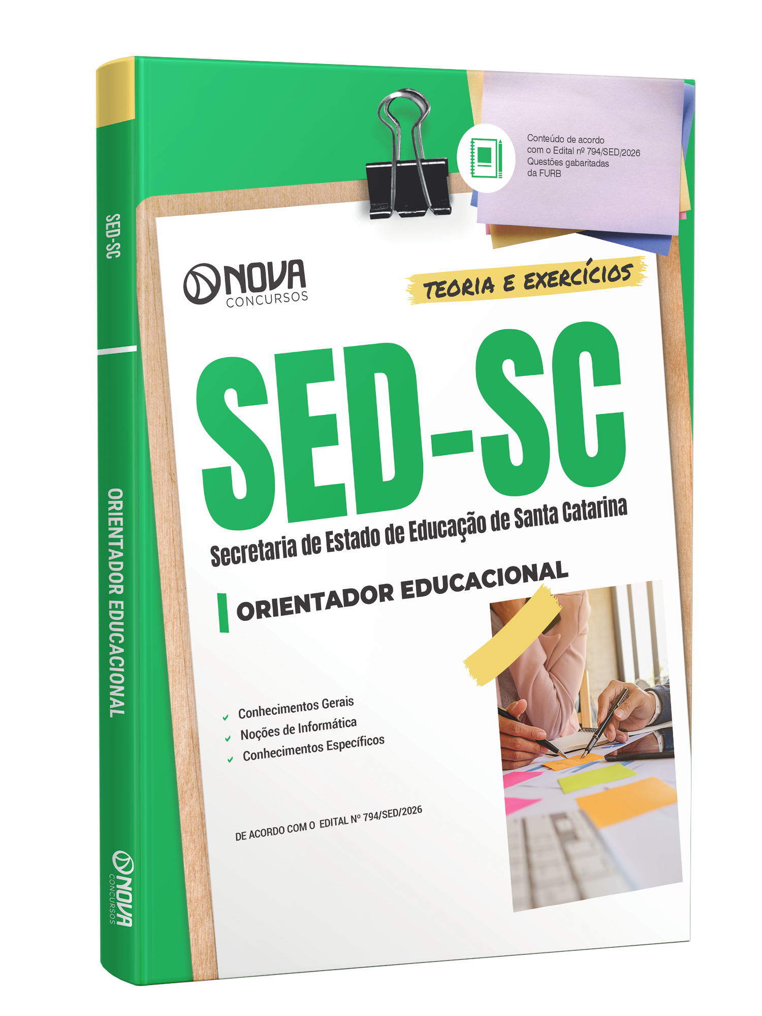 - Apostila SED-SC 2026 - Orientador Educacional: 100% atualizada e totalmente otimizada para agilizar seus estudos, de acordo com o último Edital. O material foi elaborado por nosso time de professores especialistas em concursos e organizado para proporcionar uma fácil assimilação do conteúdo.