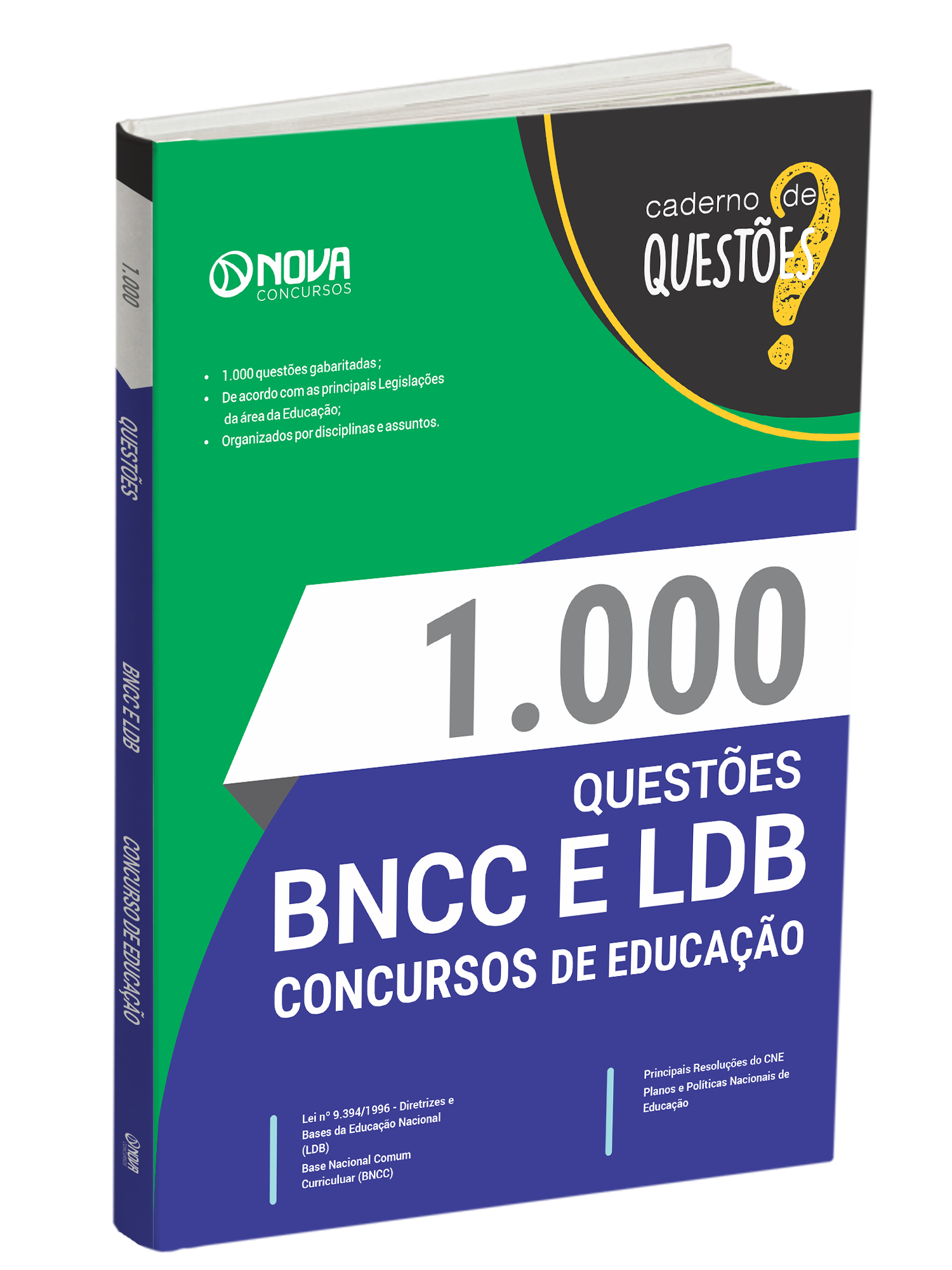 - Livro 1.000 Questões Gabaritadas - BNCC e LDB - Legislação Educacional: inclui questões de concursos recentes das maiores bancas do país, selecionadas de acordo com as principais Legislações Educacionais cobrados nos últimos concursos da área educacional.