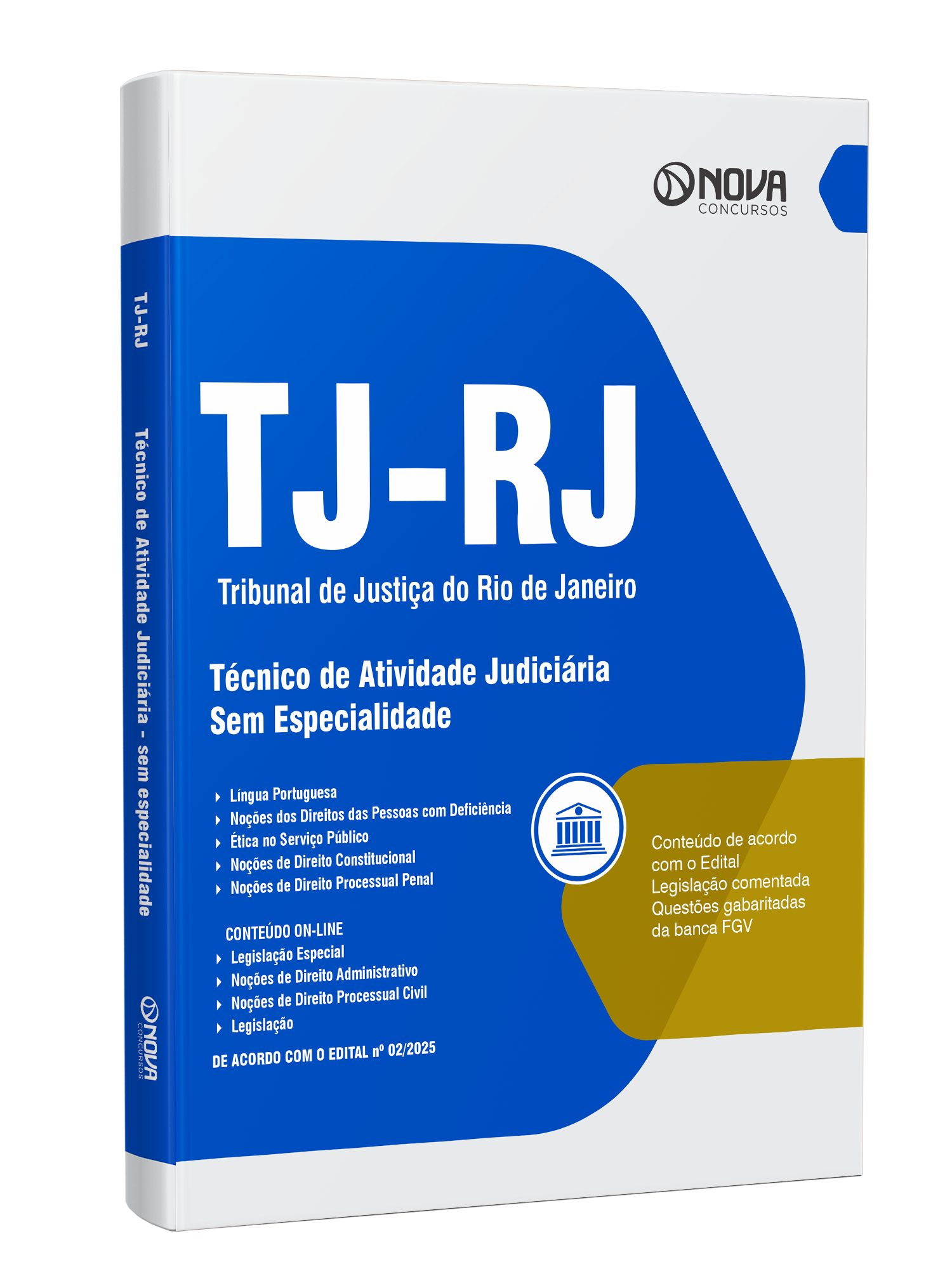 - Apostila TJ-RJ 2025 - Técnico de Atividade Judiciária: 100% atualizada e totalmente otimizada para agilizar seus estudos, de acordo com o Edital 02/2025. O material foi elaborado por nosso time de professores especialistas em concursos e organizado para proporcionar uma fácil assimilação do conteúdo.