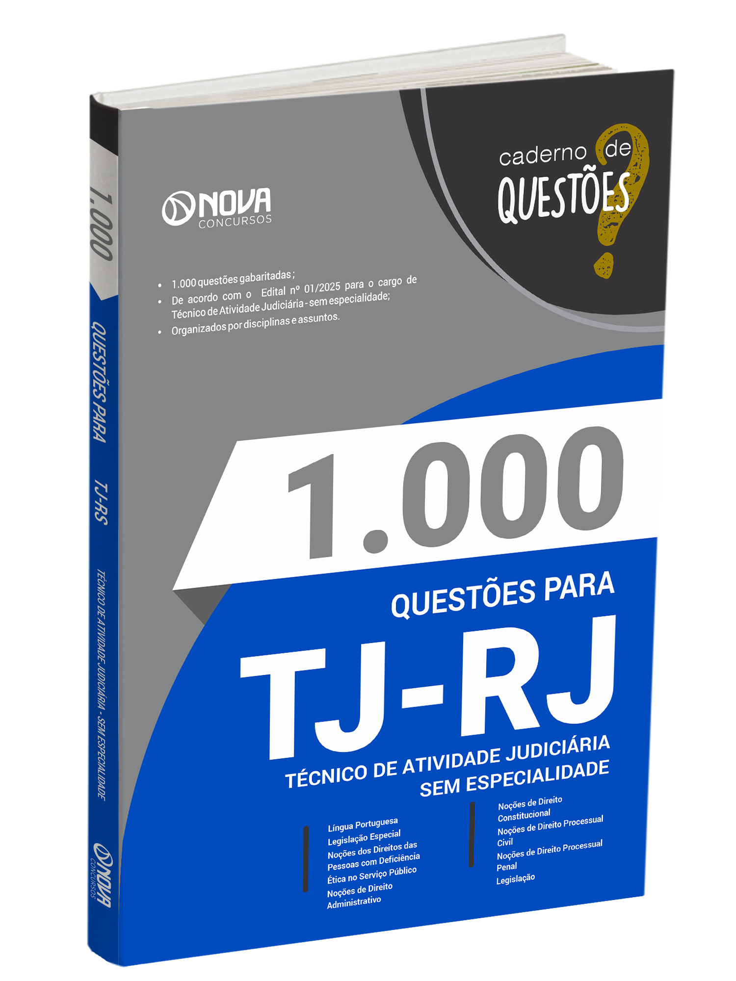 - Livro 1000 Questões Gabaritadas para o TJ-RJ - Técnico de Atividade Judiciária: inclui questões de concursos recentes da banca FGV, organizadora responsável pelo certame do concurso do Tribunal de Justiça do Rio de Janeiro, selecionadas de acordo com os principais assuntos cobrados no edital, para o cargo de Técnico de Atividade Judiciária.