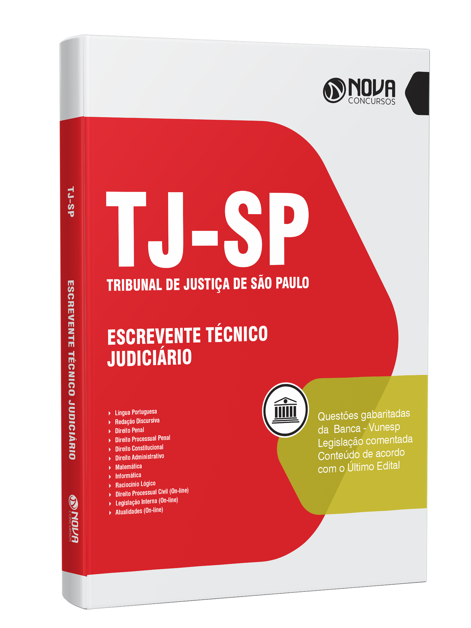 - Livro 1.300 Questões Gabaritadas para TJ-SP - Escrevente Técnico Judiciário: inclui questões de concursos recentes da banca Vunesp, organizadora responsável pelo certame do concurso do Tribunal de Justiça de São Paulo, selecionadas de acordo com os principais assuntos cobrados no ultimo edital, para o cargo Escrevente Técnico Judiciário.