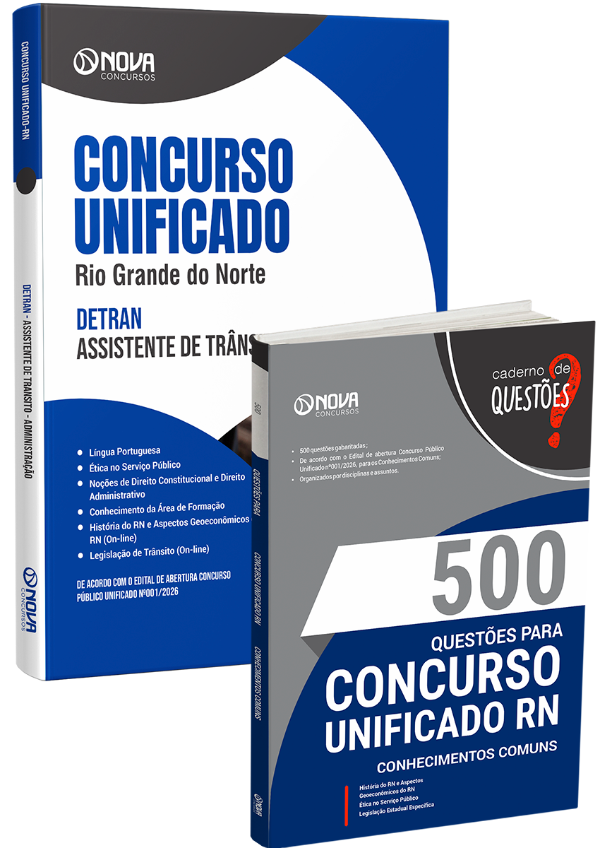 - Livro 500 Questões Gabaritadas para Unificado RN - Conhecimentos Comuns: inclui questões de concursos recente da banca organizadora responsável pelo certame do concurso do Concurso Unificado do Rio Grande do Norte, selecionadas de acordo com os principais assuntos cobrados no edital.