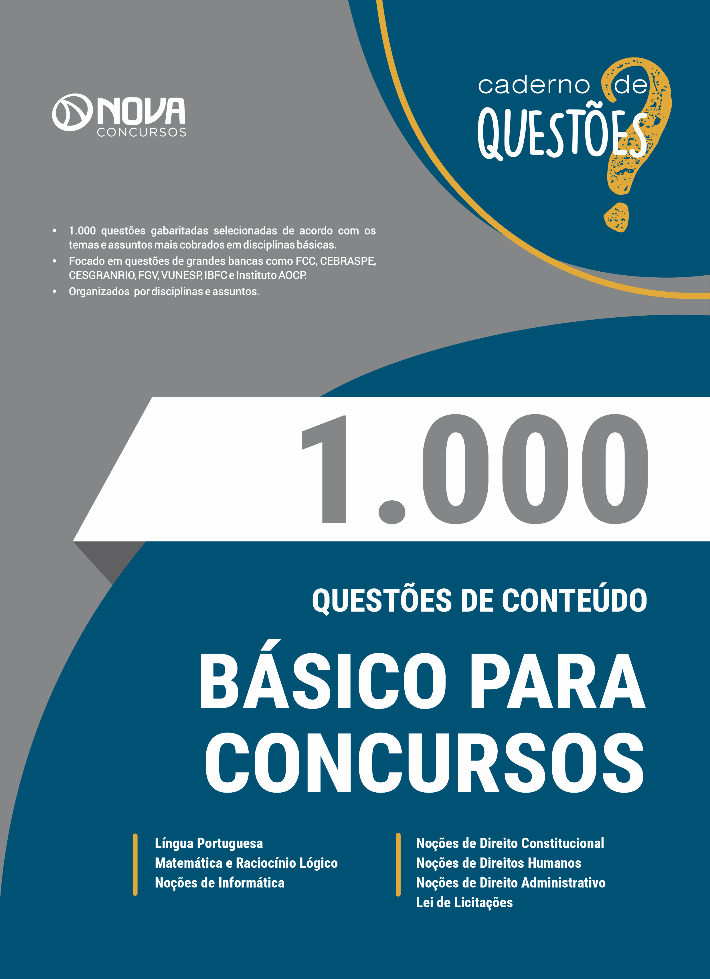 O caderno 1.000 Questões Gabaritadas de Conteúdos Básicos para Concursos têm padrão de livro, capa resistente, é muito bem elaborado e se apresenta como um material indispensável à sua preparação no concurso.