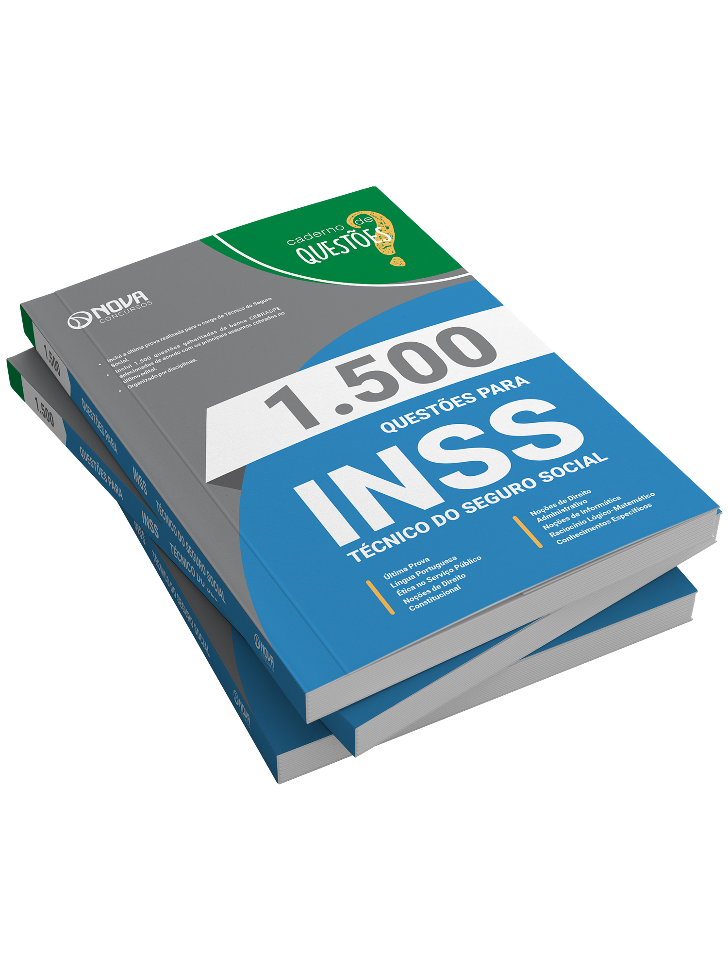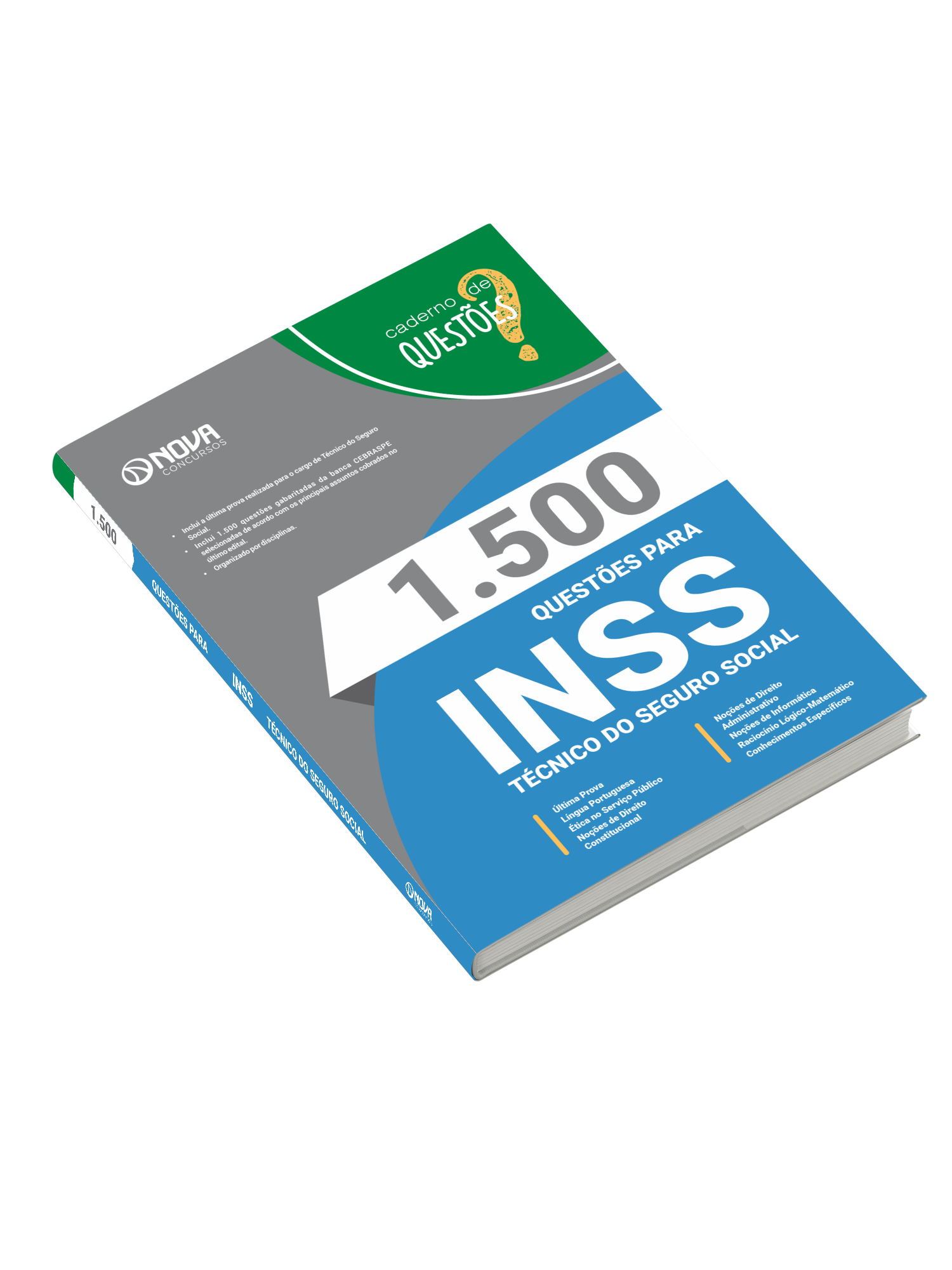 O caderno 1.500 Questões Gabaritadas Instituto Nacional do Seguro Social - Técnico do Seguro Social tem padrão de livro, capa resistente, é muito bem elaborado e se apresenta como um material indispensável à sua preparação no concurso.